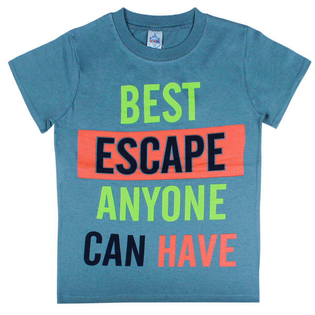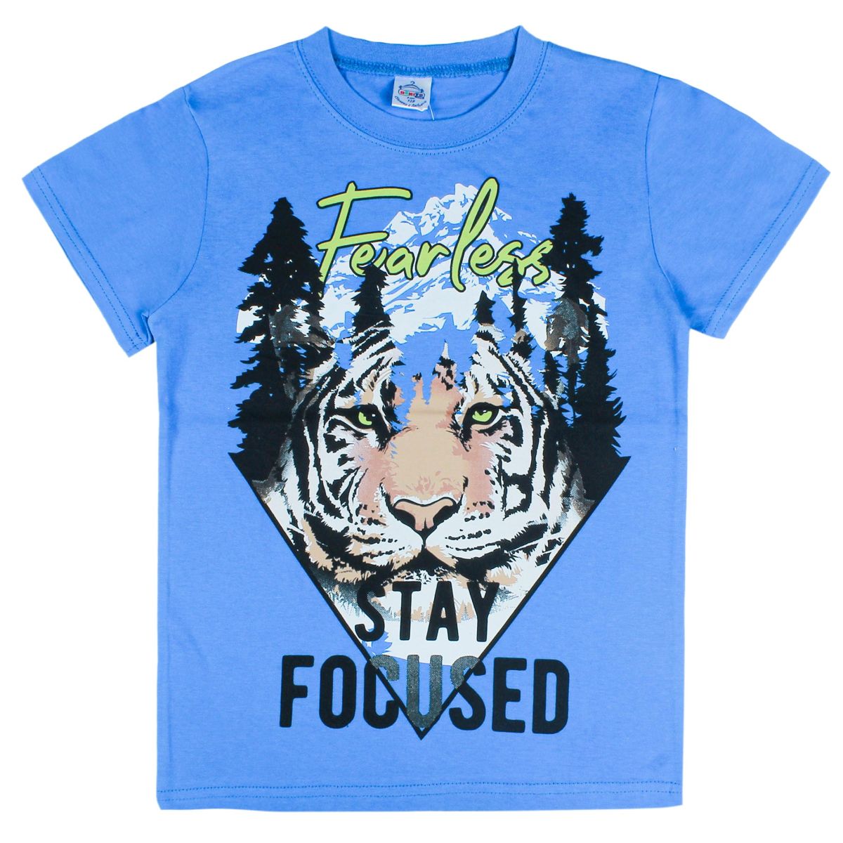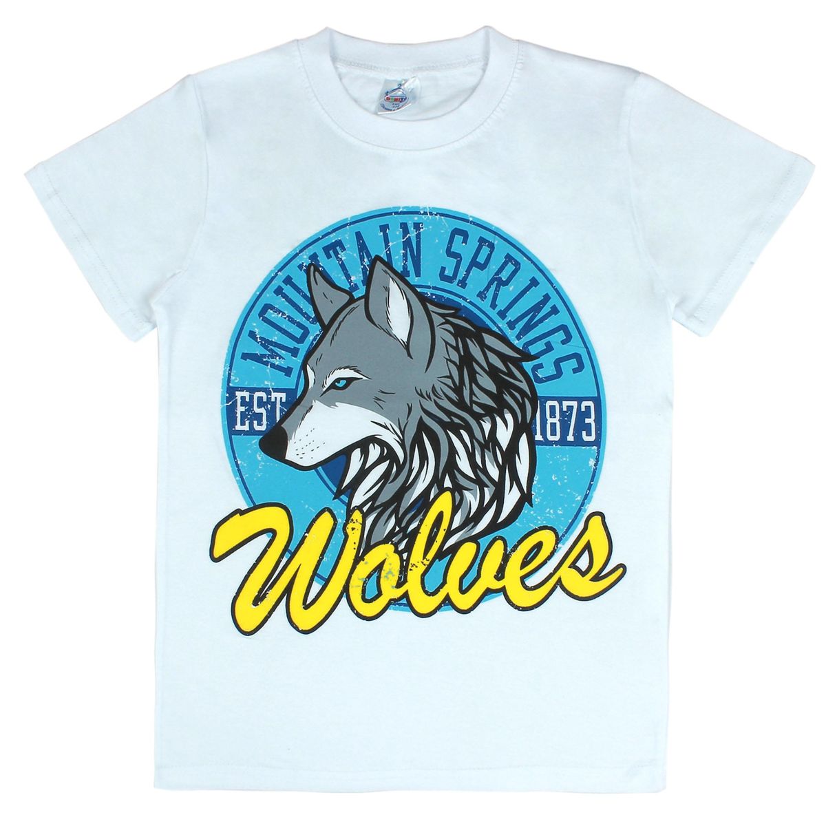 Отличная футболка для мальчиков, изготовленная из хлопкового полотна. Прямой крой изделия не сковывает движений. Футболка оформлена печатным принтом. Материал: кулирная гладь.