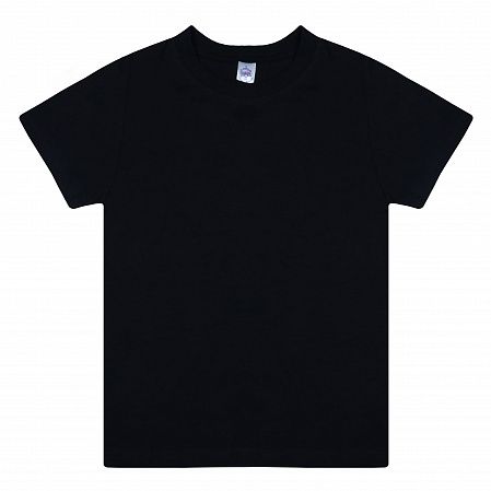 Однотонная черная футболка детская, выполненная из хлопкового полотна. Ткань кулирная гладь