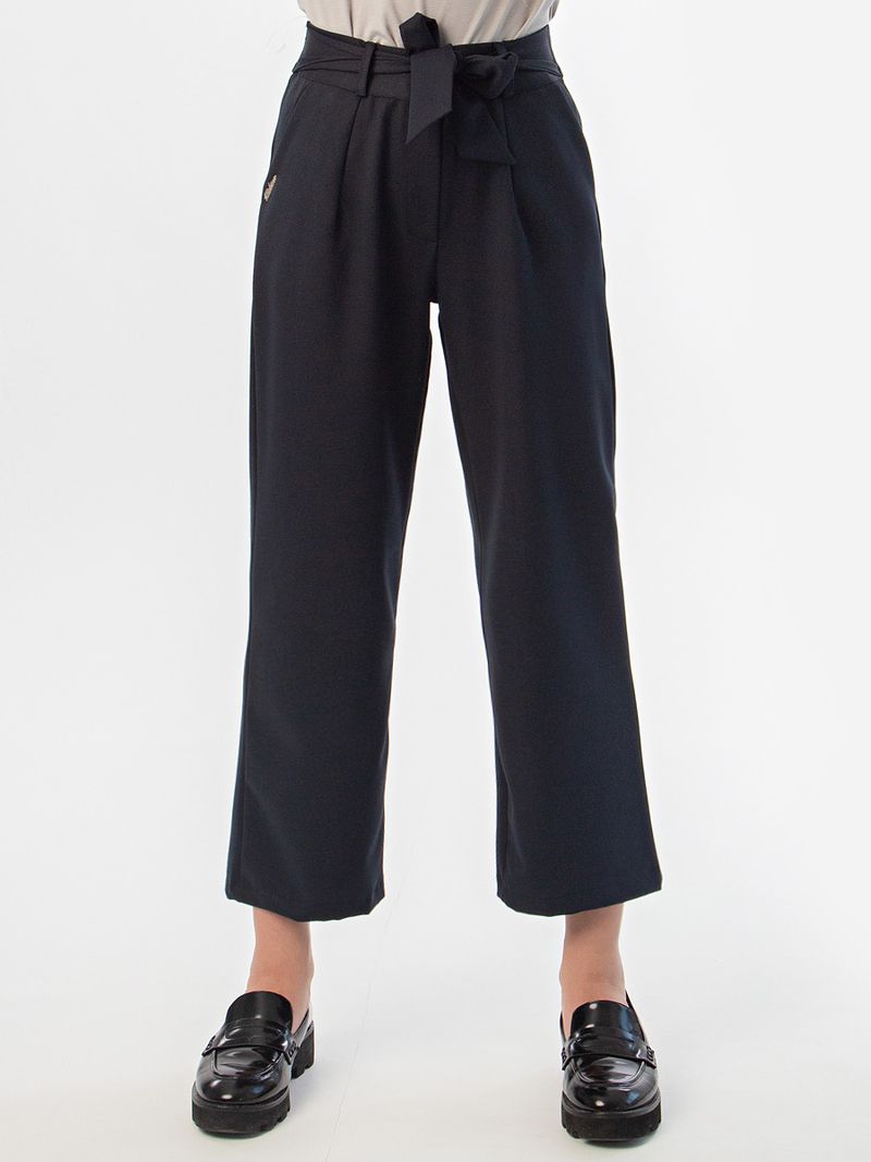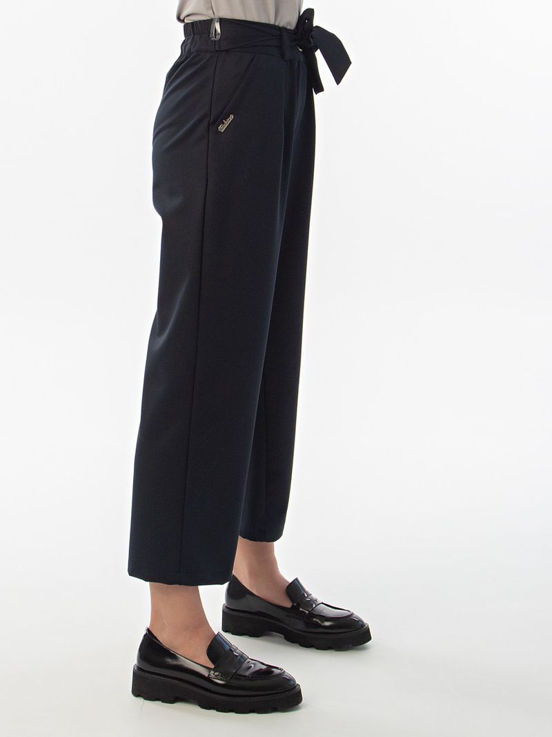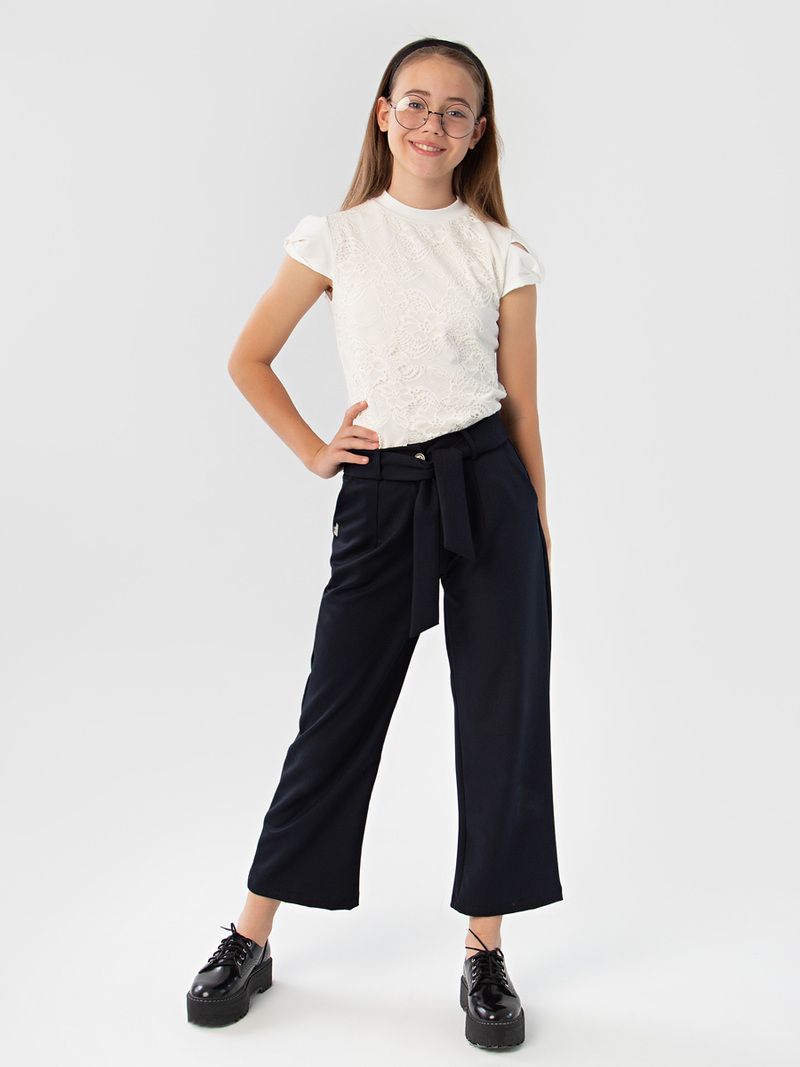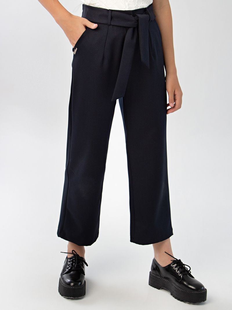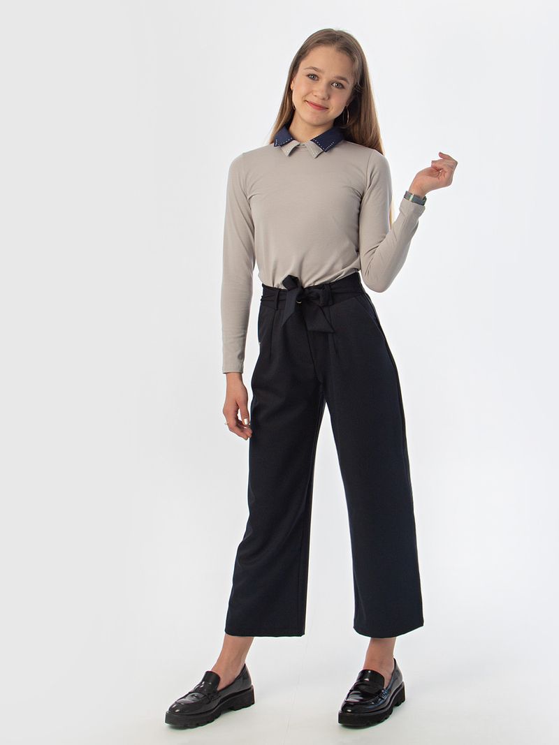 Классические брюки, которые прекрасно подходят для школы. Удобные, они выполнены в модном фасоне. Смотрятся с любым верхом: от блузок до однотонных свитшотов.
