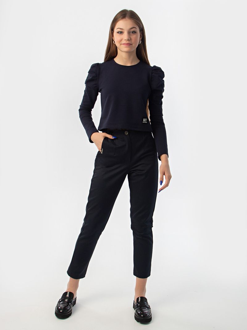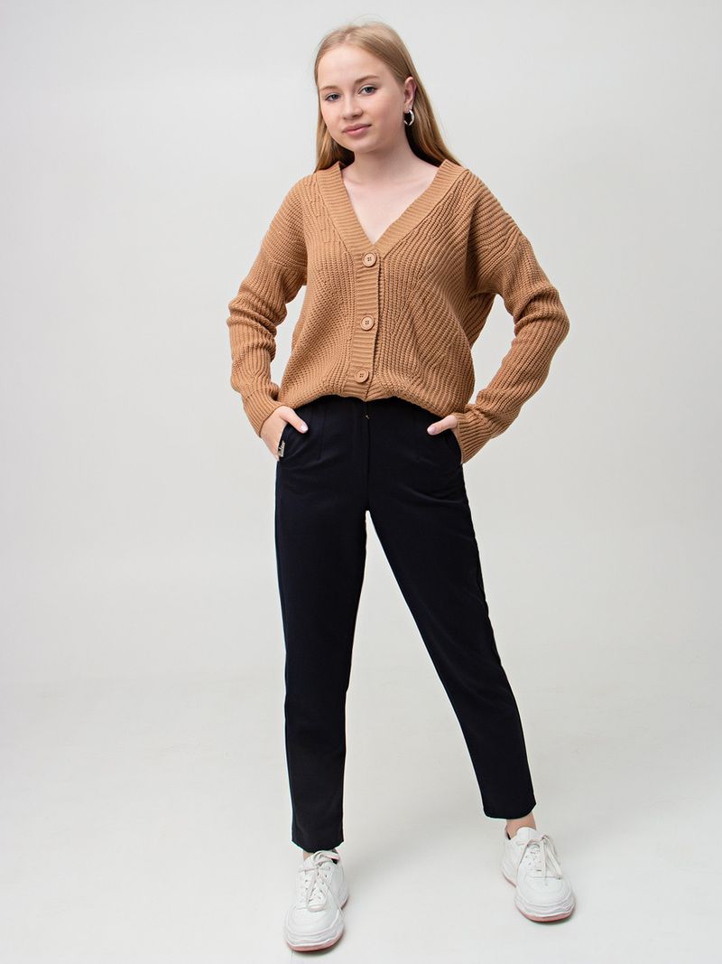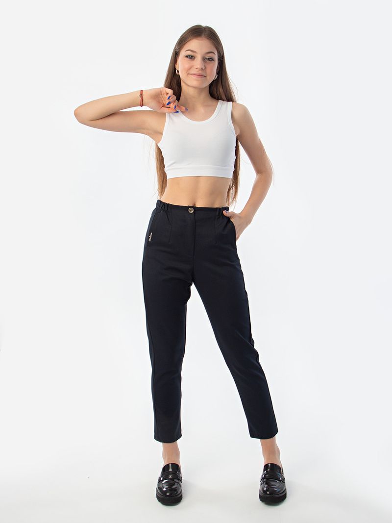Классические брюки, которые прекрасно подходят для школы. Удобные, они выполнены в модном фасоне. Смотрятся с любым верхом: от блузок до однотонных свитшотов.