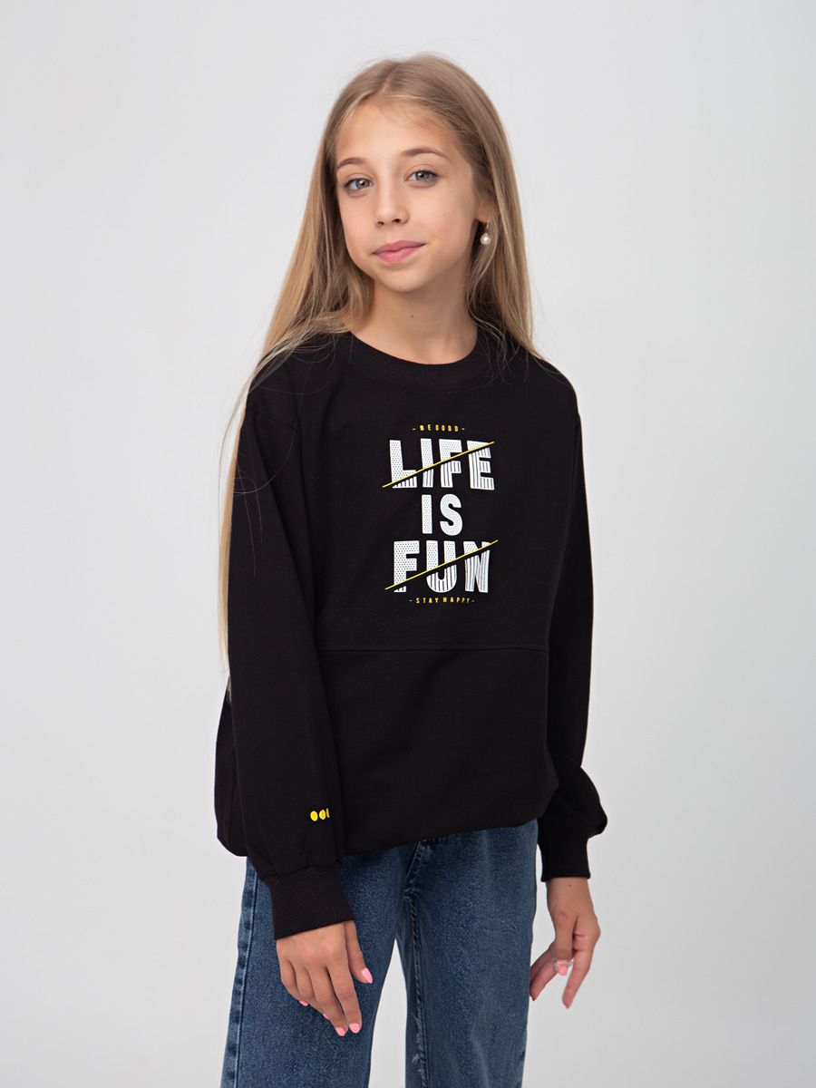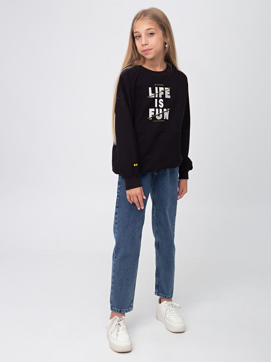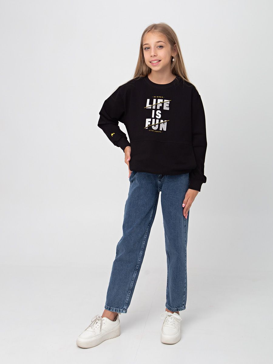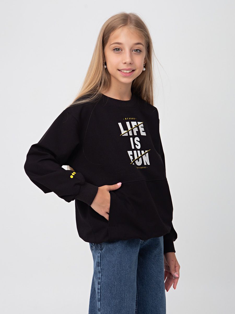 Свитшоты – одна из модных тенденций этого года. Немного мешковатая одежда популярна среди школьников и подростков, а потому такой свитшот будет востребован в любом магазине. Его можно носить в качестве элемента школьной одежды или как повседневный образ. Прекрасно сочетается и с юбками, и с брюками.