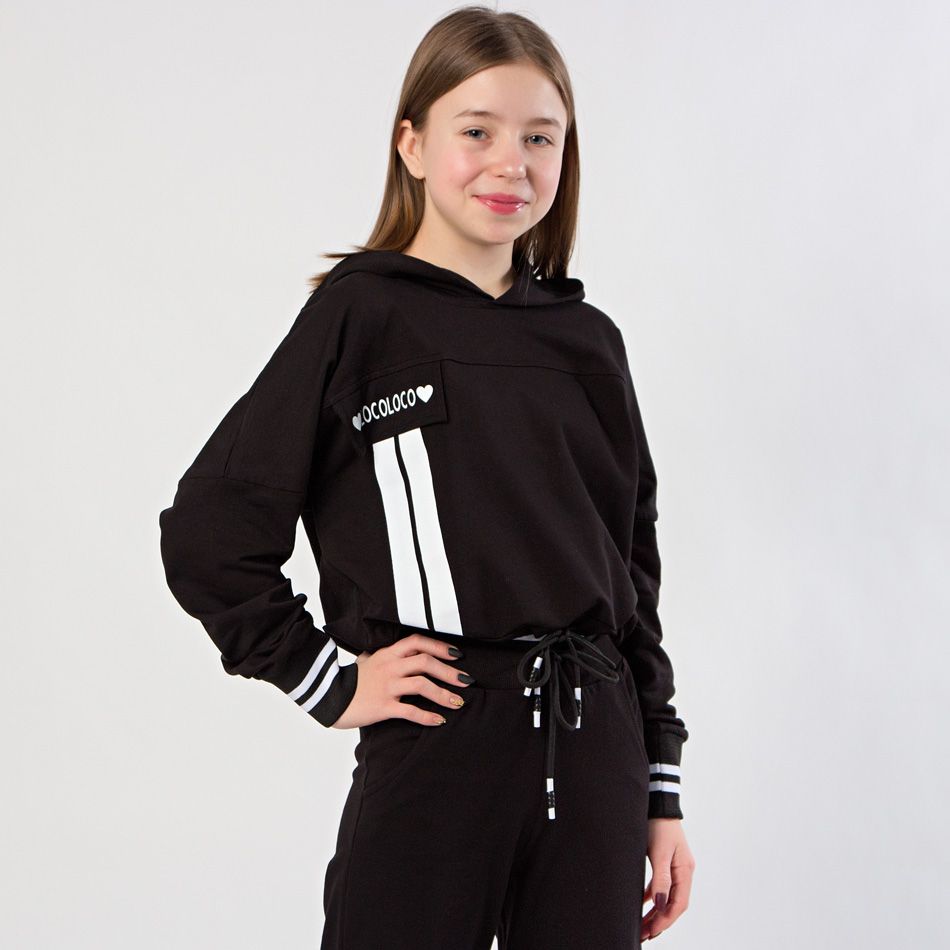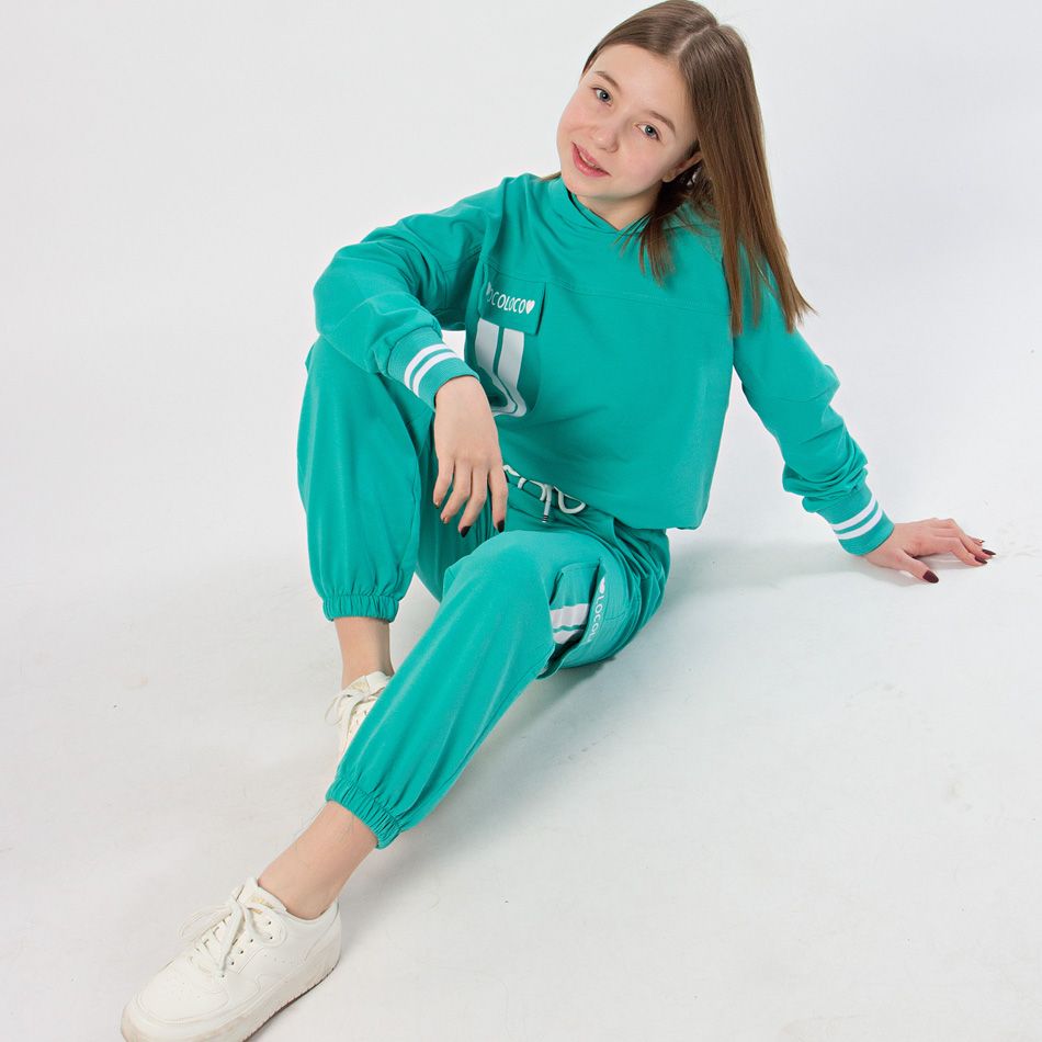 Костюм для девочки отлично подойдет для активных прогулок. Представляет собой готовый вариант, однако каждый элемент комплекта можно совмещать с другими вещами из гардероба ребенка. Выполнен по последним тенденциям подростковой моды!