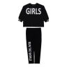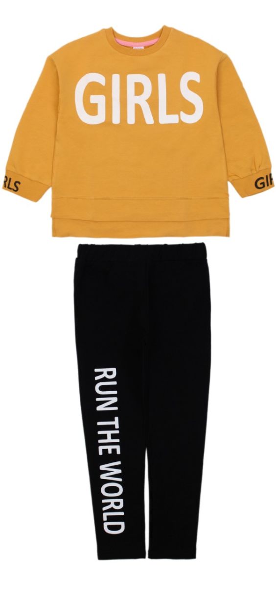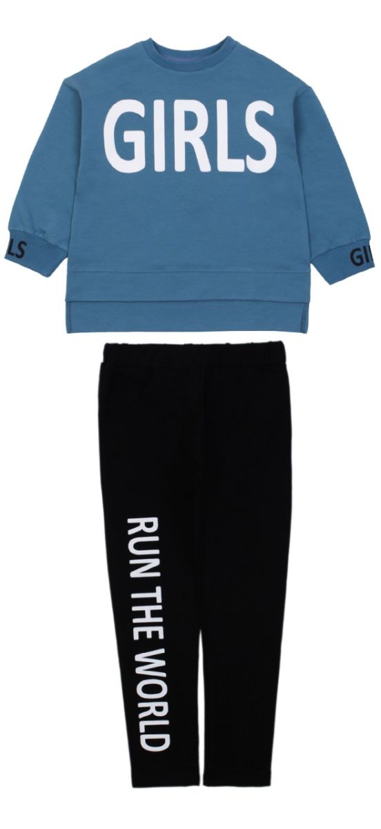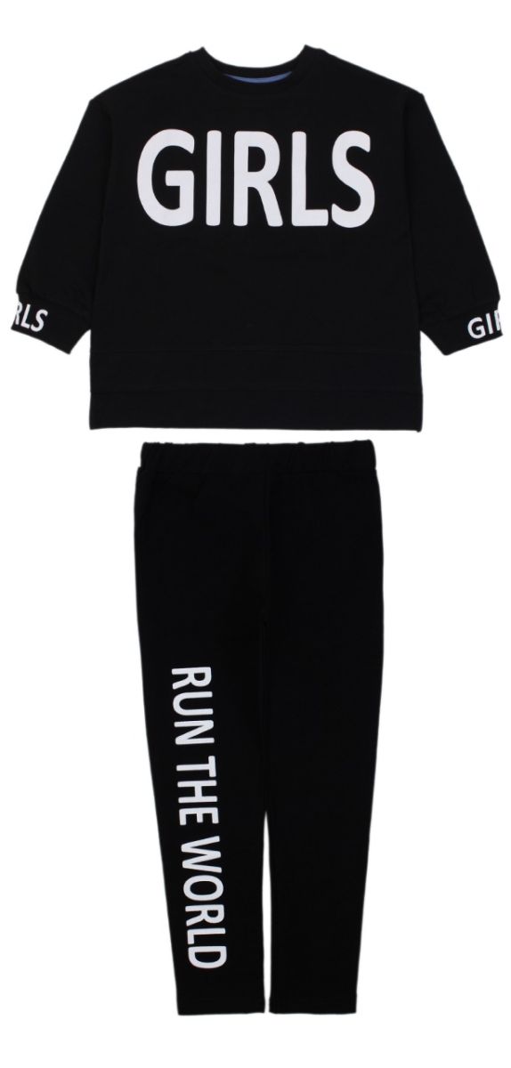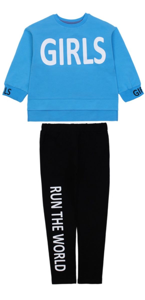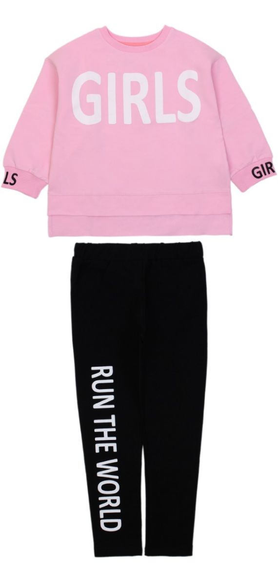 Комплект для девочек (толстовка , лосины) из футера, толстовка 1/4 рукава, украшена принтом, на манжете рукава принт. Лосины с принтом на широкой резинке.