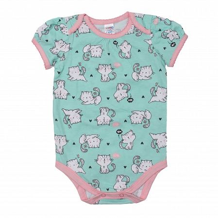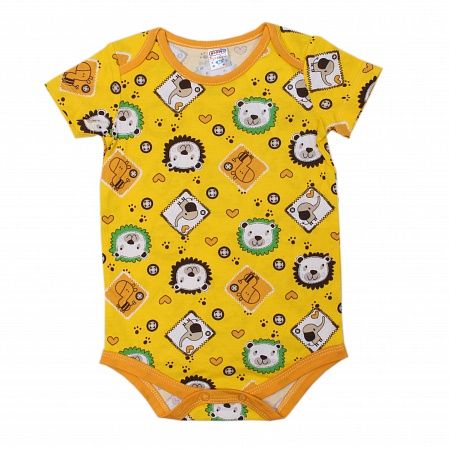 Боди для детей с коротким рукавом. Набивная ткань. Вверх бодика в виде захлестов. Низ бодика на кнопках. Цвета в ассортименте.