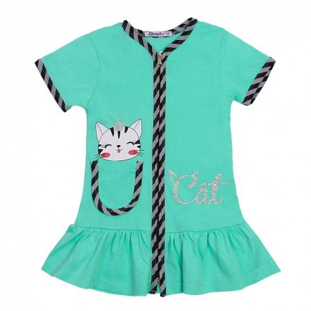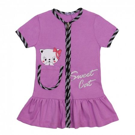 Халат для девочки от 3 до 7 лет. Изделие из велюра на молнииоднотонных цветов с принтом и глитером. Нашитые карманы с двух сторон, обработанные обтачкой.