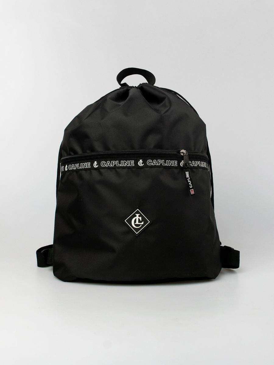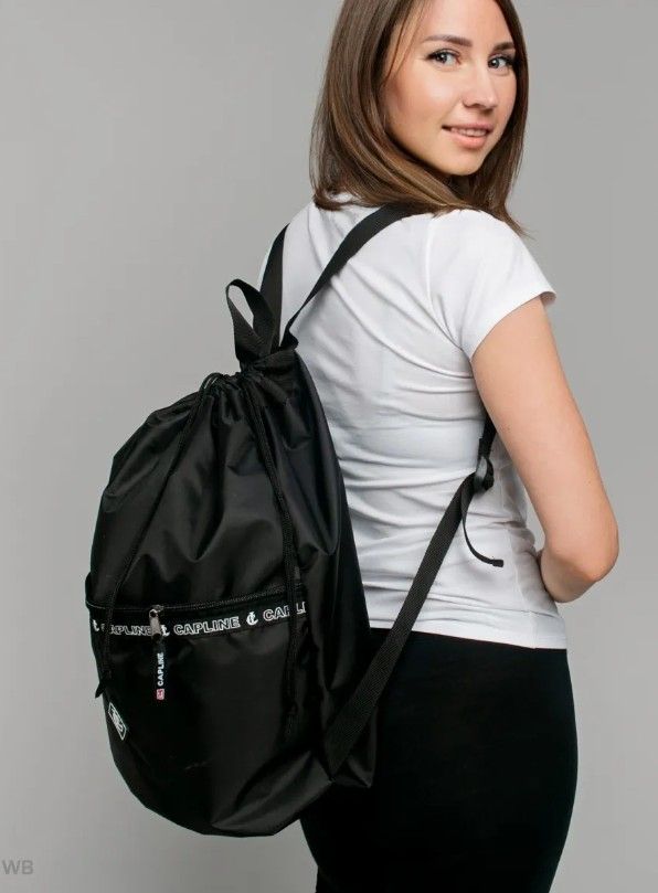 Передний карман на молнии. Завязки сверху шнурком, лямки на плечи.