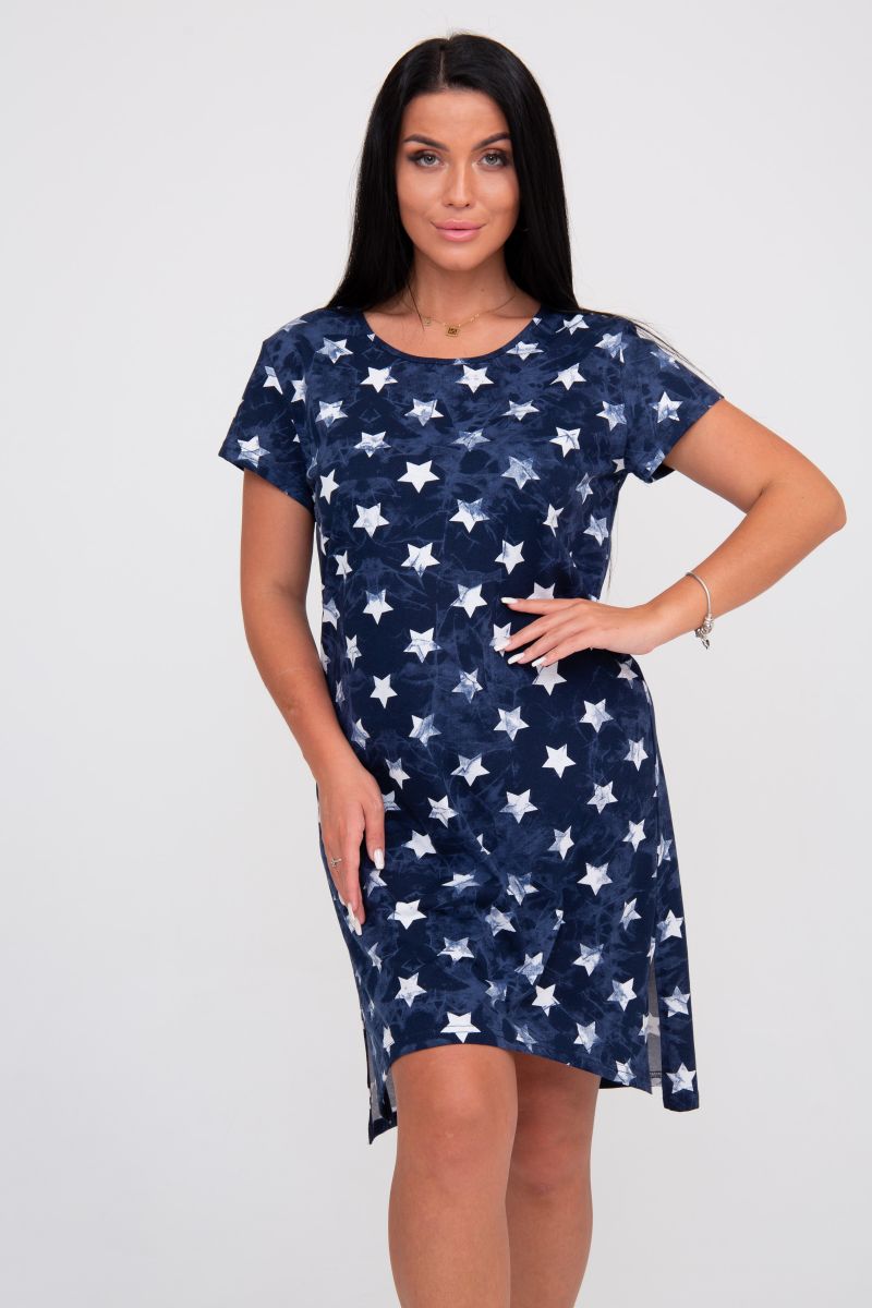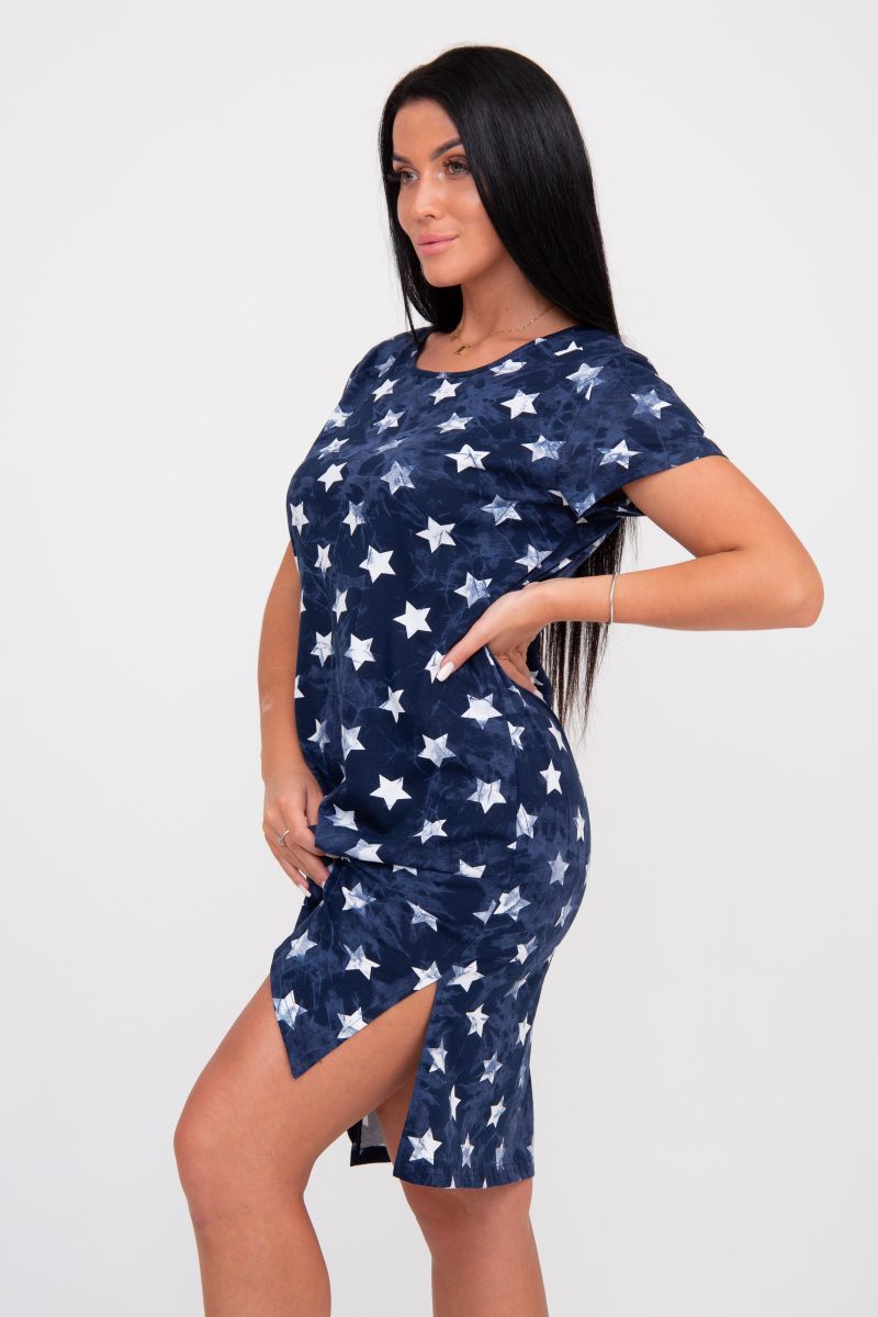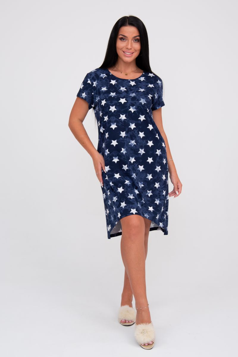 Домашняя туника из кулирки с коротким рукавом. Фигурный низ - полочка короче спинки.
