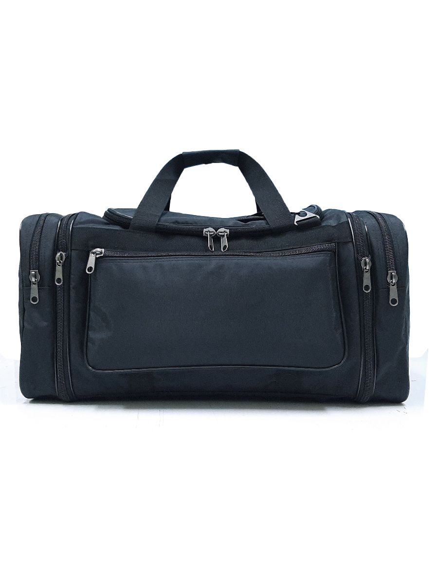 Карманы: передний на молнии, 2 боковых на молнии, основное отделение на молнии. Увеличение в стороны. Жесткое дно, Плечевой ремень.