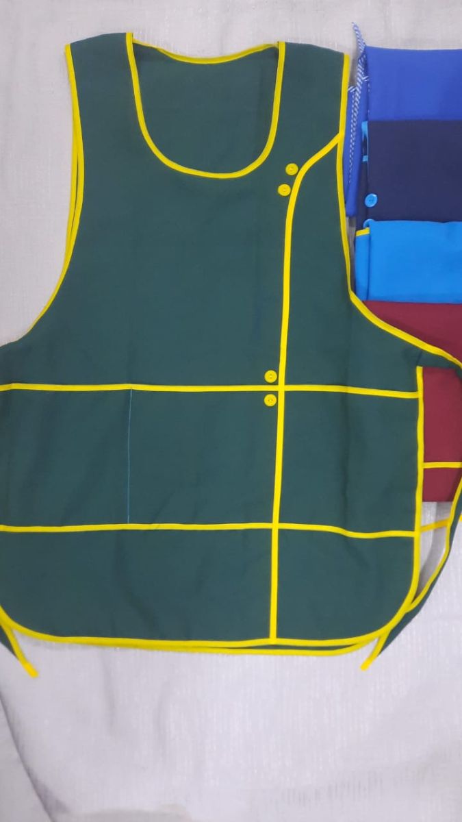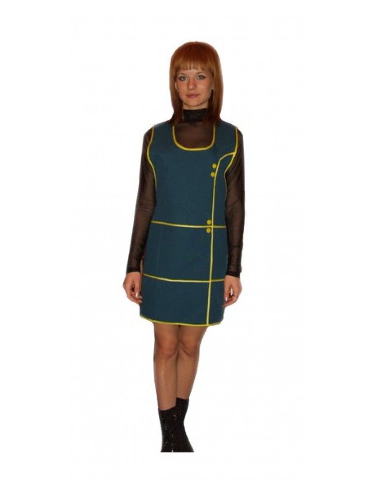 Фартук для продавцов (модель А-7) со спинкой. По фартуку имеются окантовка и пуговицы в качестве декоративного элемента. Ткань изделия: габардин,