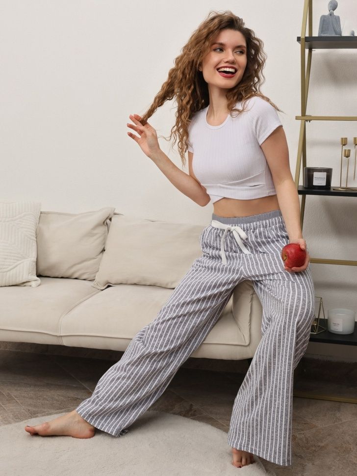 «полоска», длинные, свободные, на притачном поясе с эластичной тесьмой внутри,