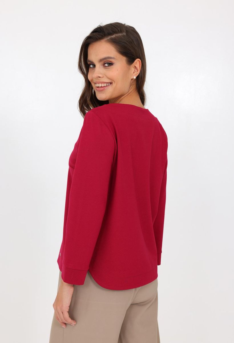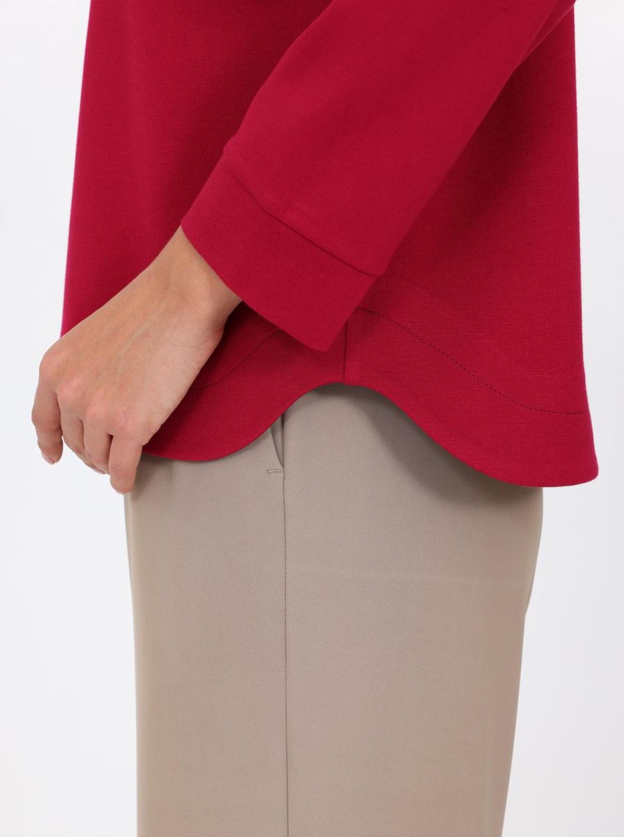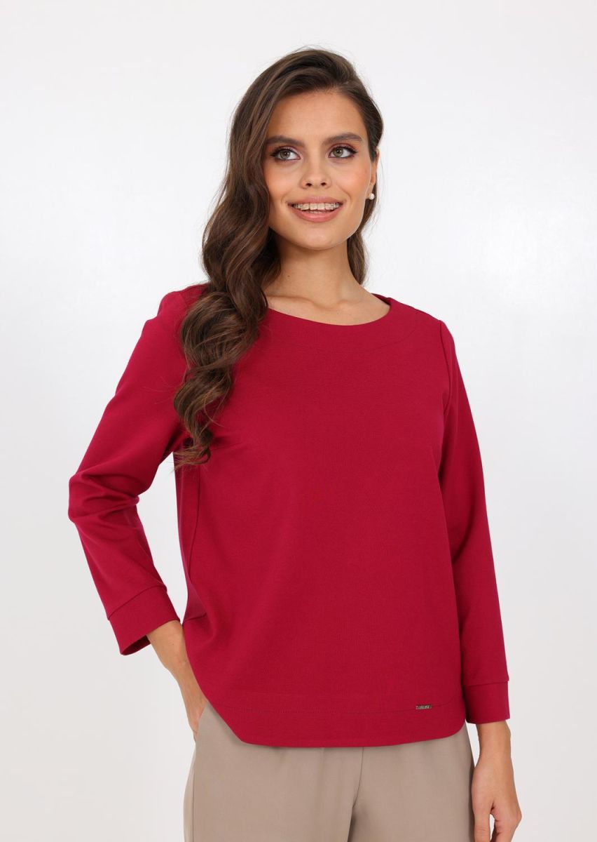 Джемпер прямого силуэта. Горловина лодочка. Рукава втачные длиной 3/4, понизу манжета. Низ фигурный.