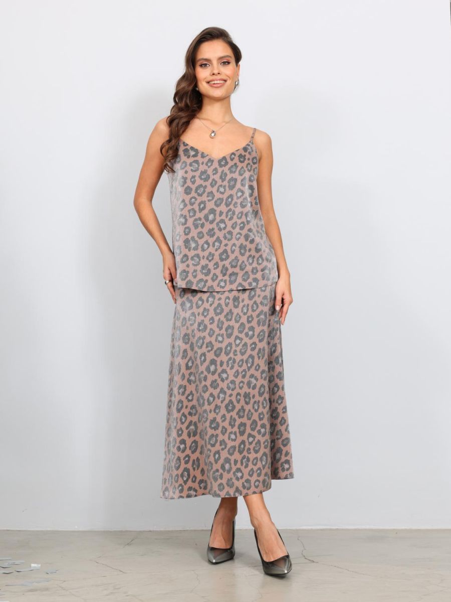 Топ прямого кроя с V-образным вырезом, тонкие регулируемые бретели. Изделие на подкладке.