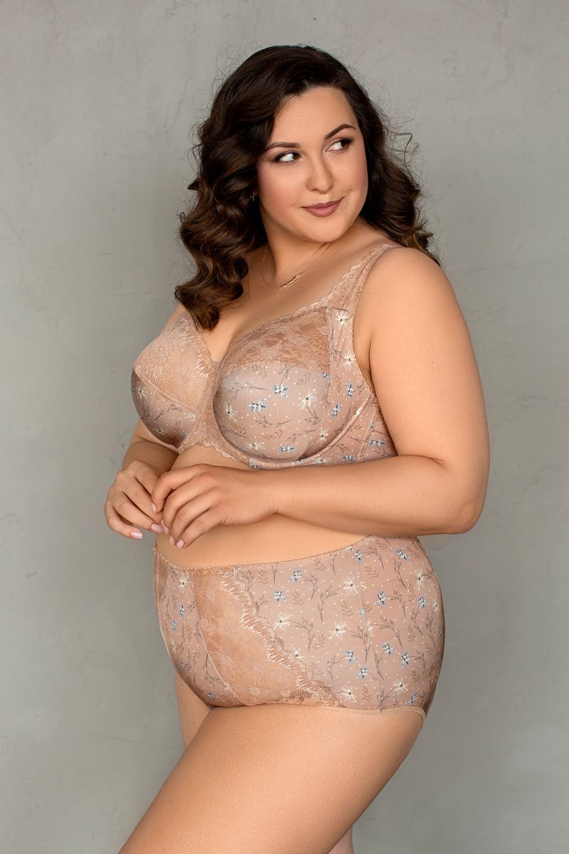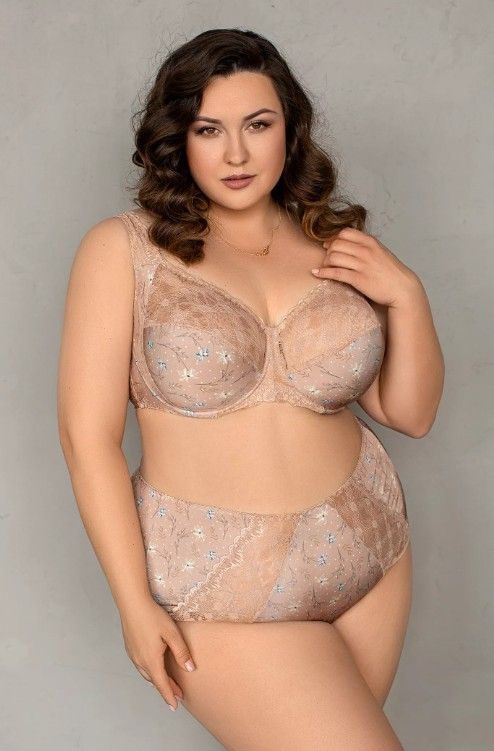 Верх чашки и пояс бюстгальтера выполнены с дополнительным нижним слоем из эластичной сетки с целью улучшения формоустойчивости, что актуально для больших размеров.