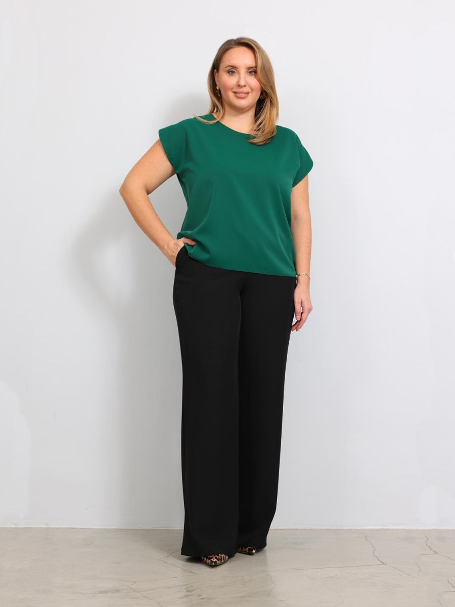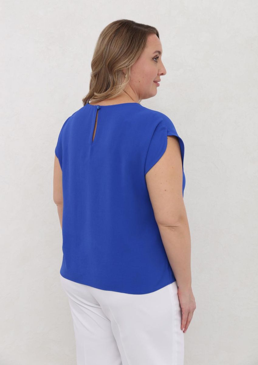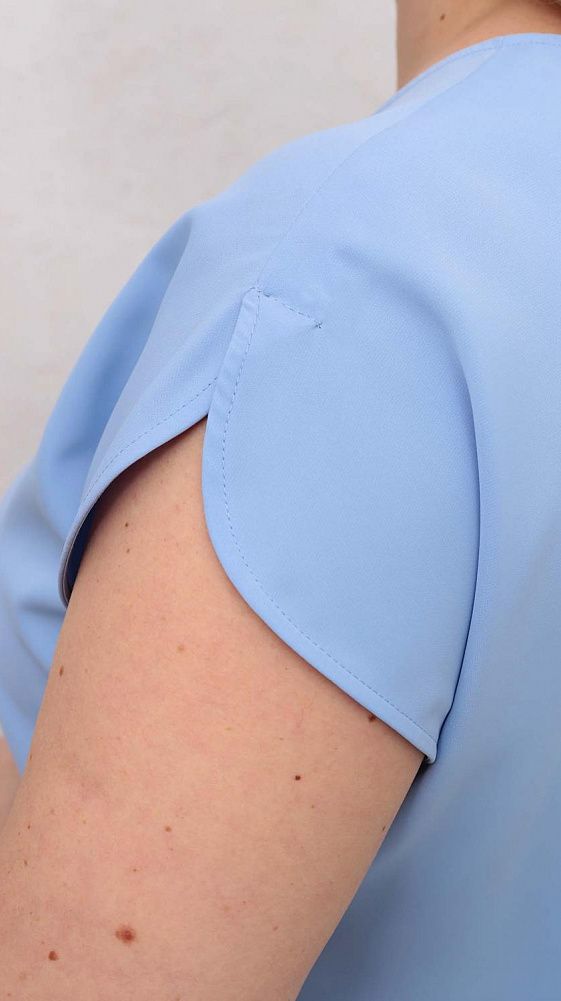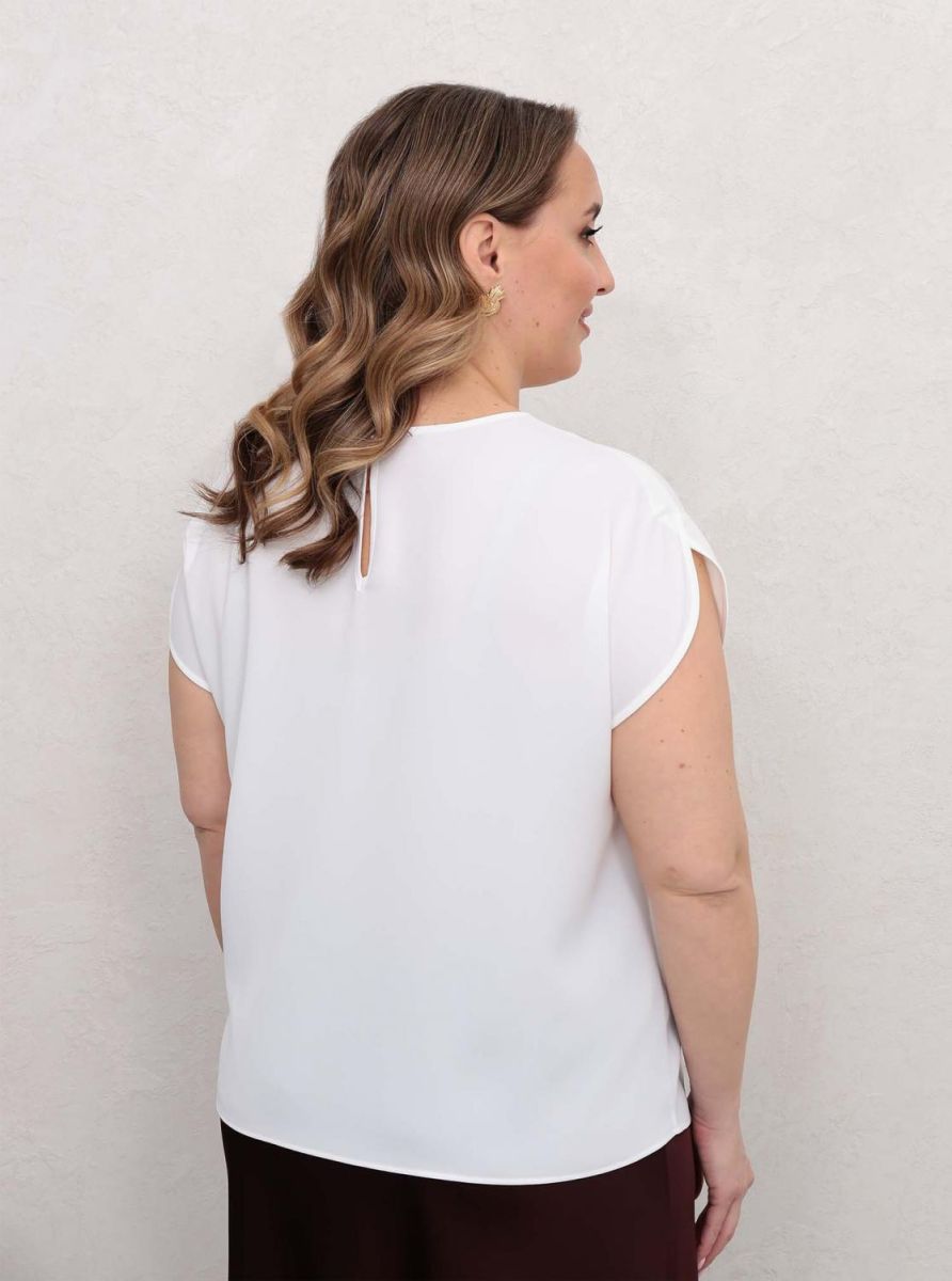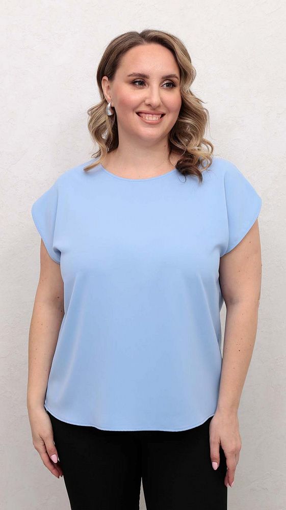 Блуза прямого силуэта. Цельнокроеные рукава с широкой проймой и свободный крой обеспечивают комфортную посадку. Однотонная блуза составит базу для повседневных и деловых образов на каждый день. Длина изделия градируется от размера к размеру.