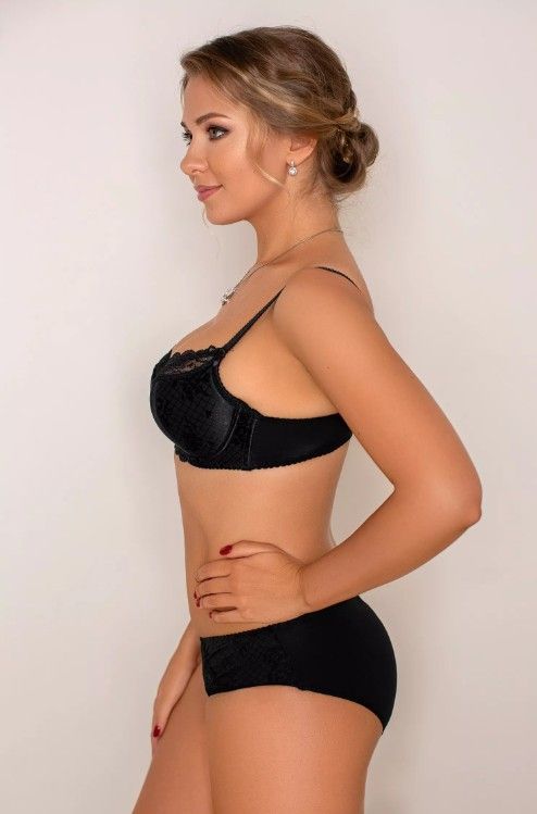Комбинированная чашка из эластичного кружева и принтованного полотна. Низ чашки дублирован поролоном. На каркасах. Боковые детали усилены стержнями.