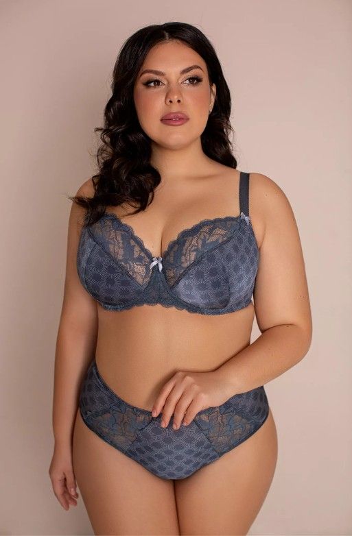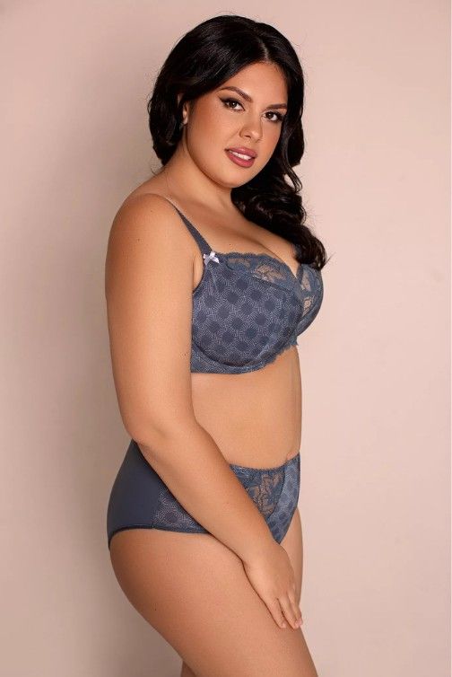 Комбинированная чашка из эластичного кружева и эластичного принтованного полотна. Низ чашки дублирован поролоном. На каркасах. Боковые детали усилены стержнями.
