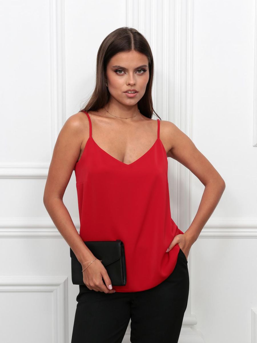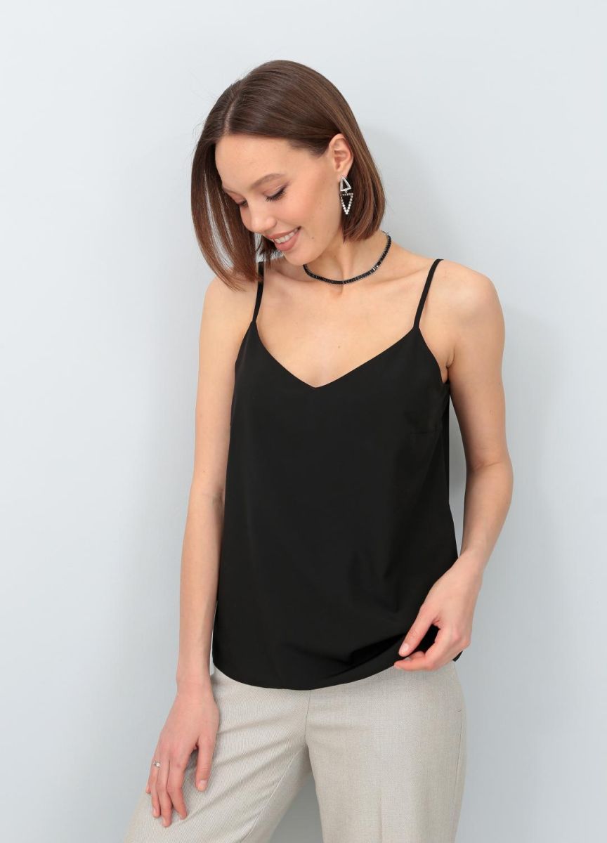 Топ прямого кроя с V-образным вырезом, тонкие регулируемые бретели.