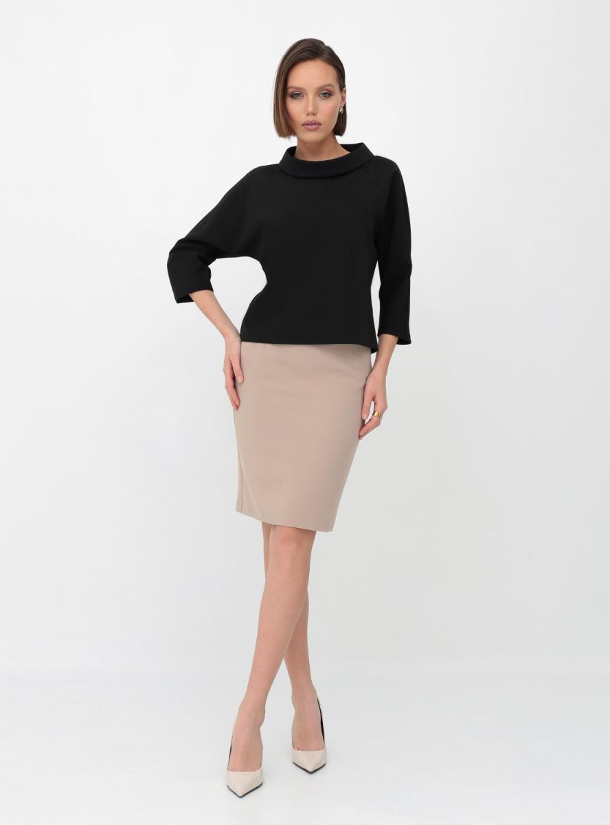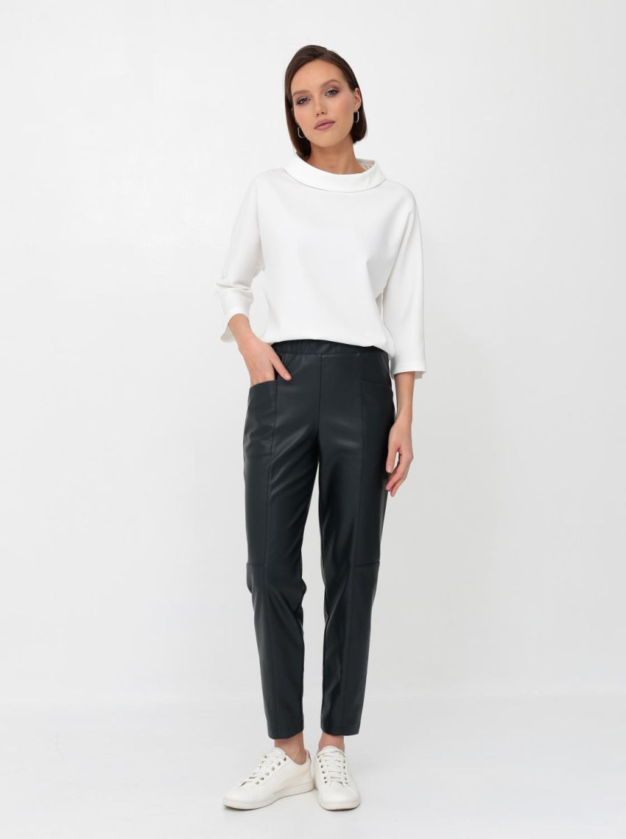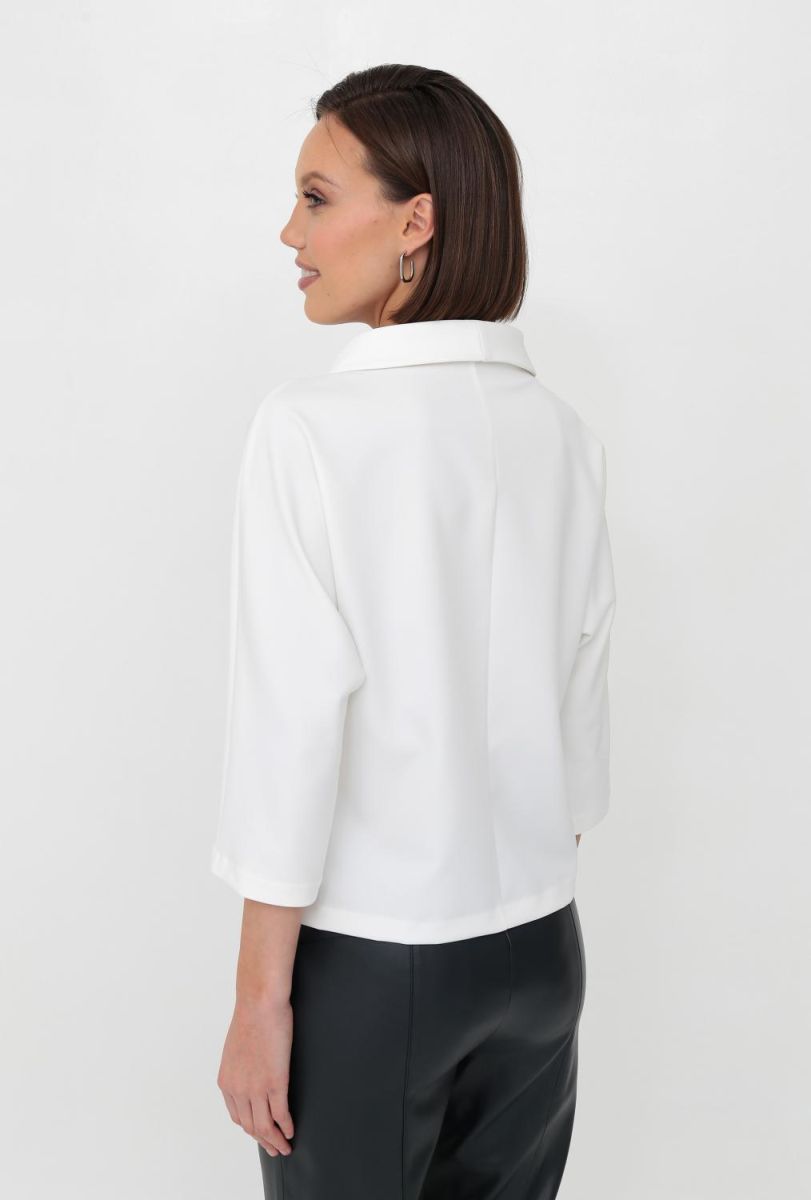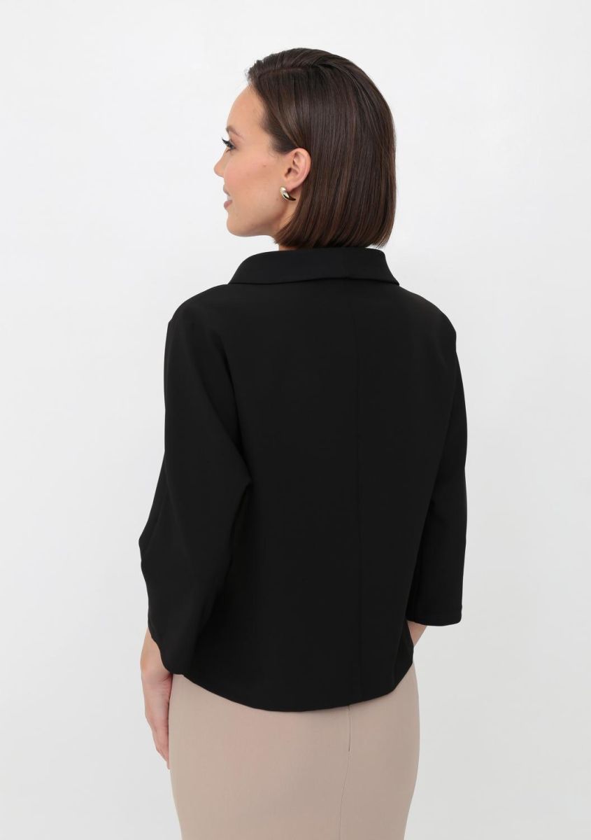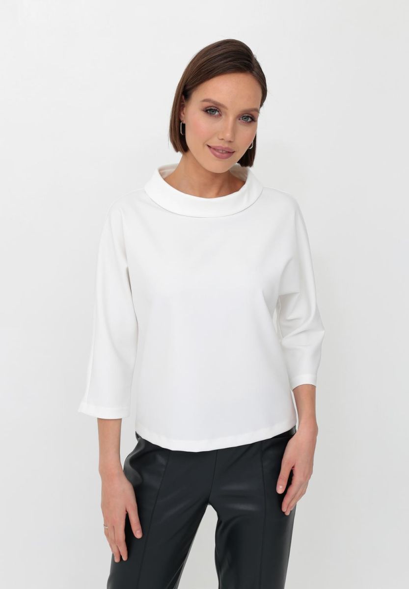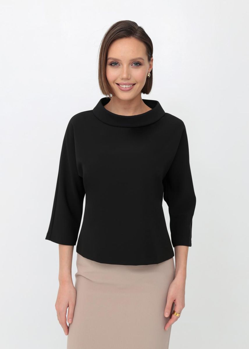 Блуза свободного кроя. Стояче отложной воротник "хомутик". Рукава 3/4 цельнокроеные.