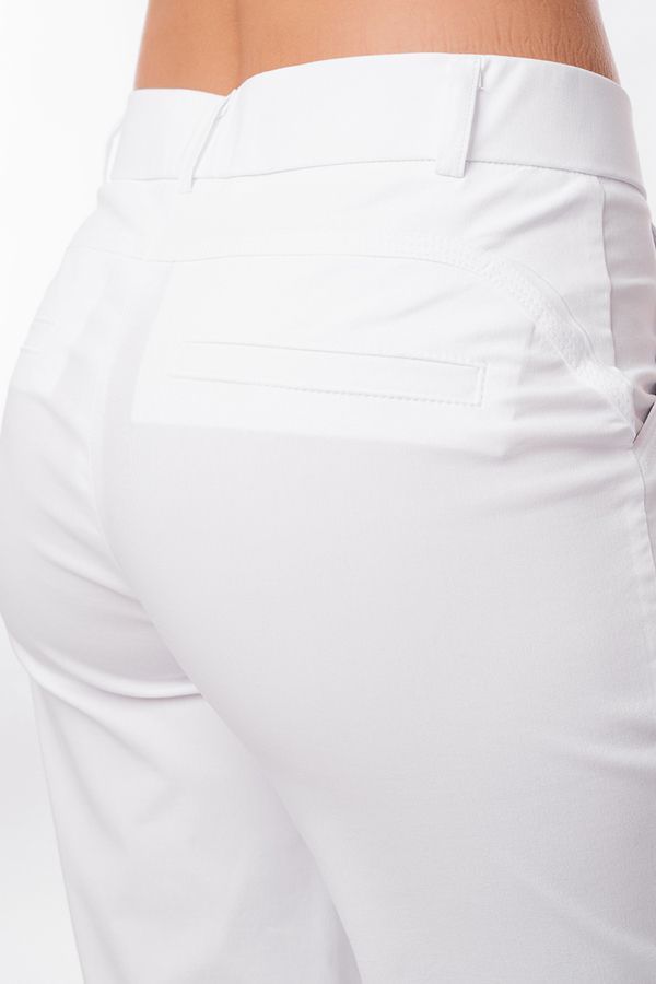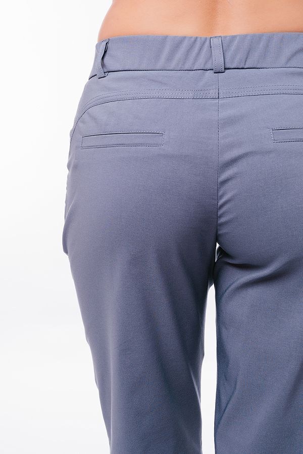 Детали: спереди застежка на молнию, боковые карманы, шлевки на поясе, сзади под фигурной кокеткой листочки с имитацией карманов. Отделка кокетки и карманов спереди - тройная строчка.
