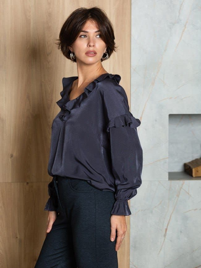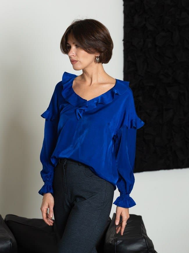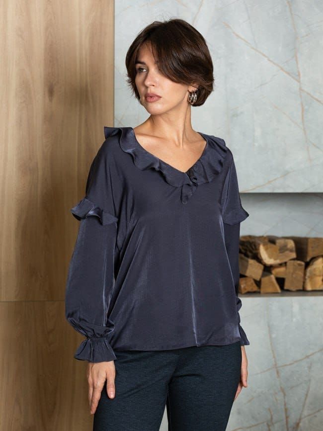 Блуза с воланами из шелковистой и струящейся вискозы.