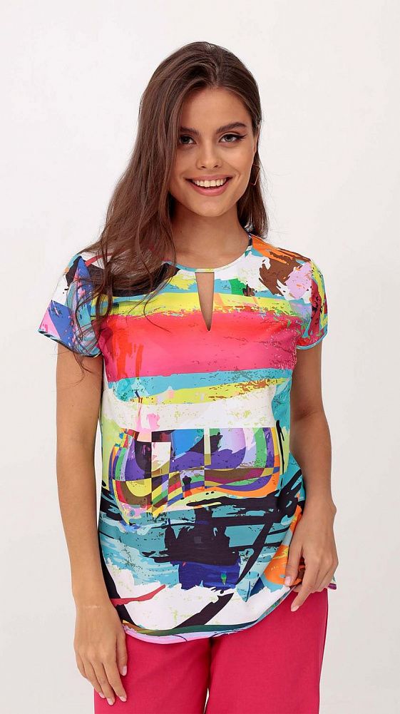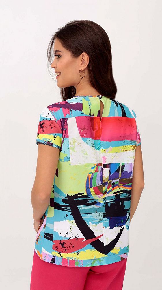 Блуза полуприлегающего силуэта. Рукав-крылышко. Застежка на пуговицу.
