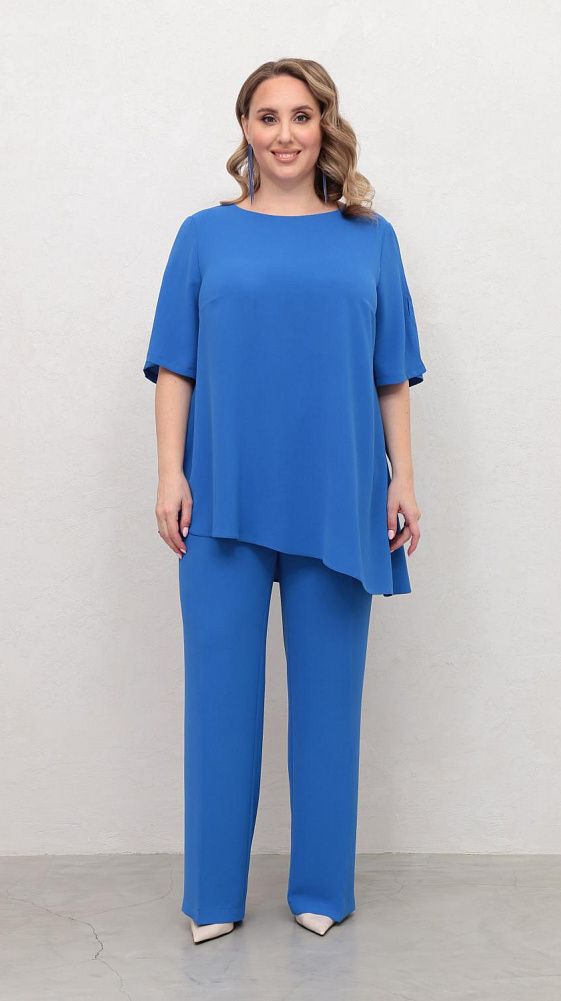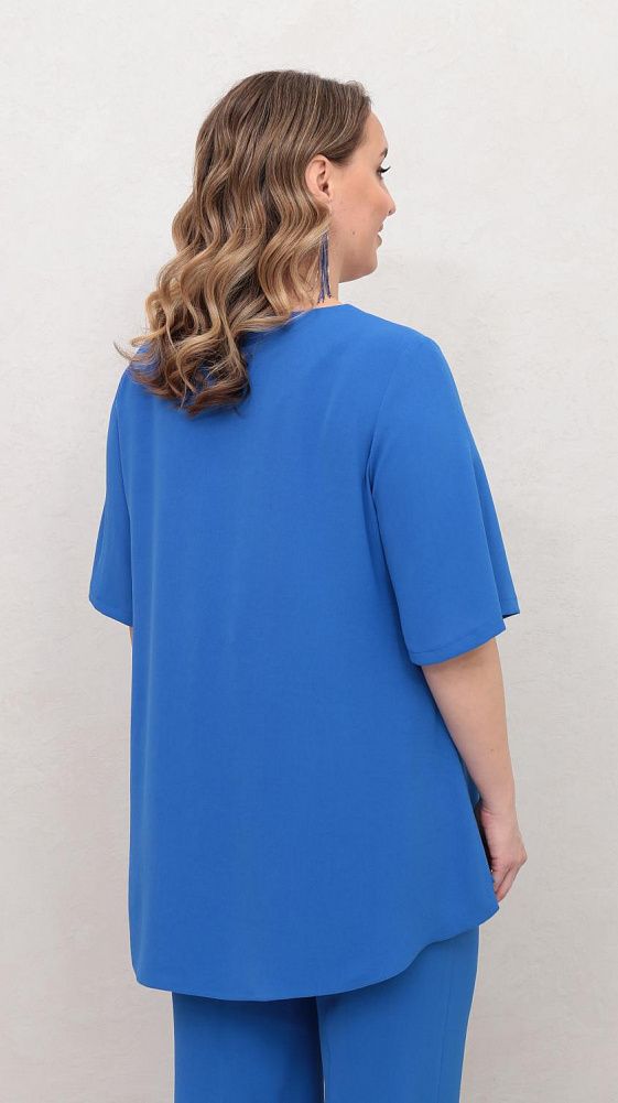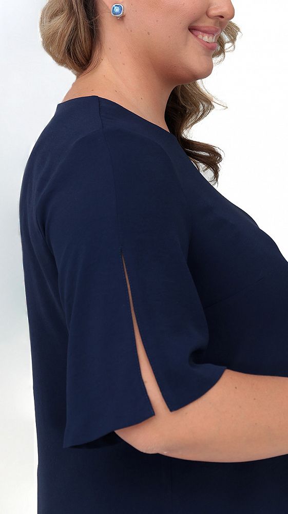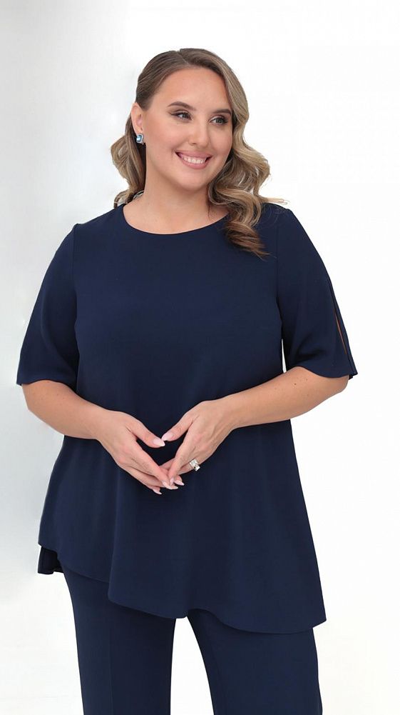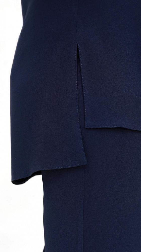 Рукава втачные, двухшовные, в переднем шве разрез.По переду нагрудные вытачки. В правом боковом шве разрез. Низ ассиметричный.