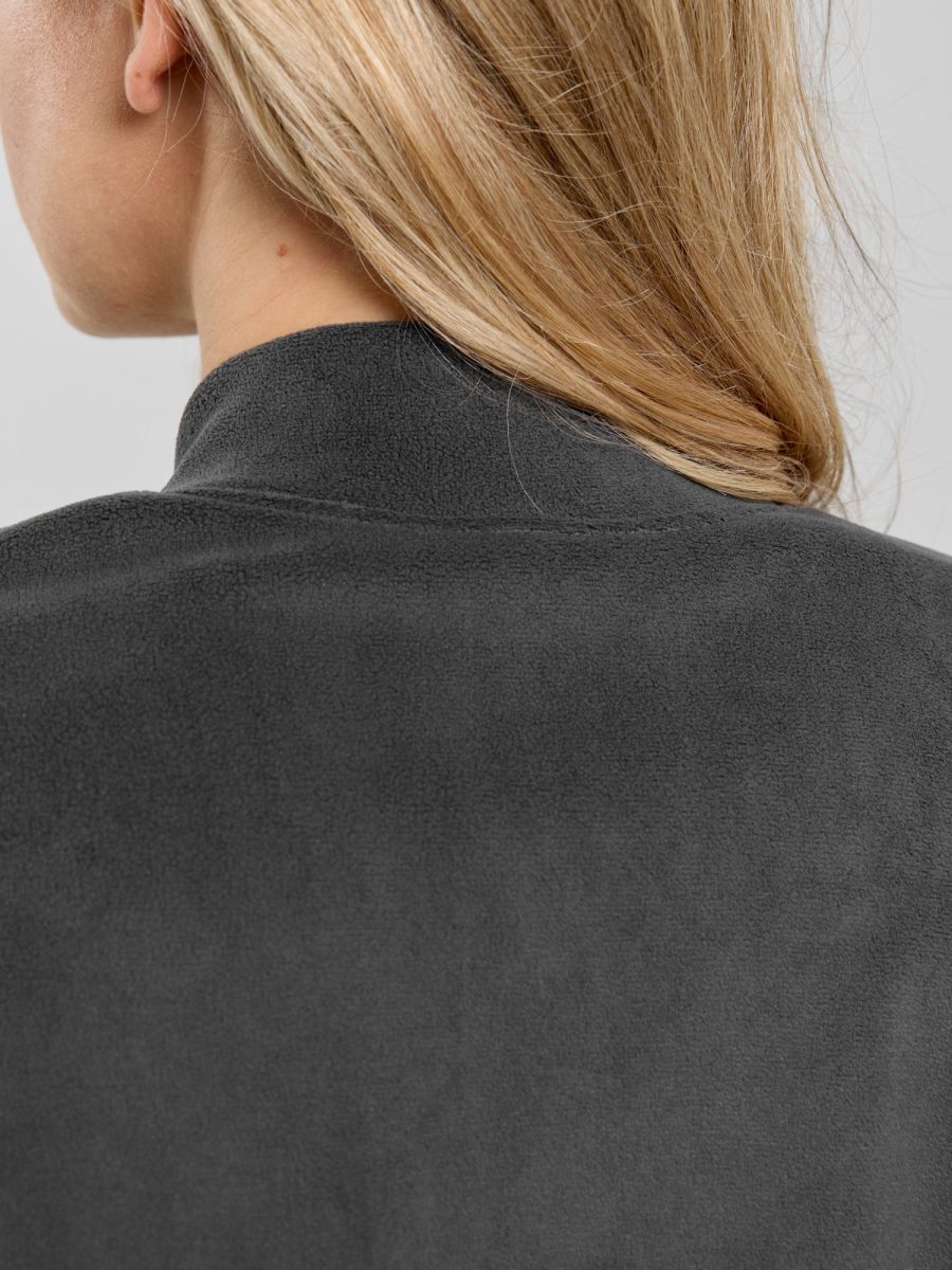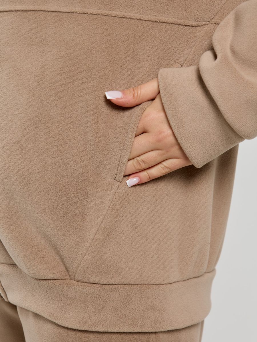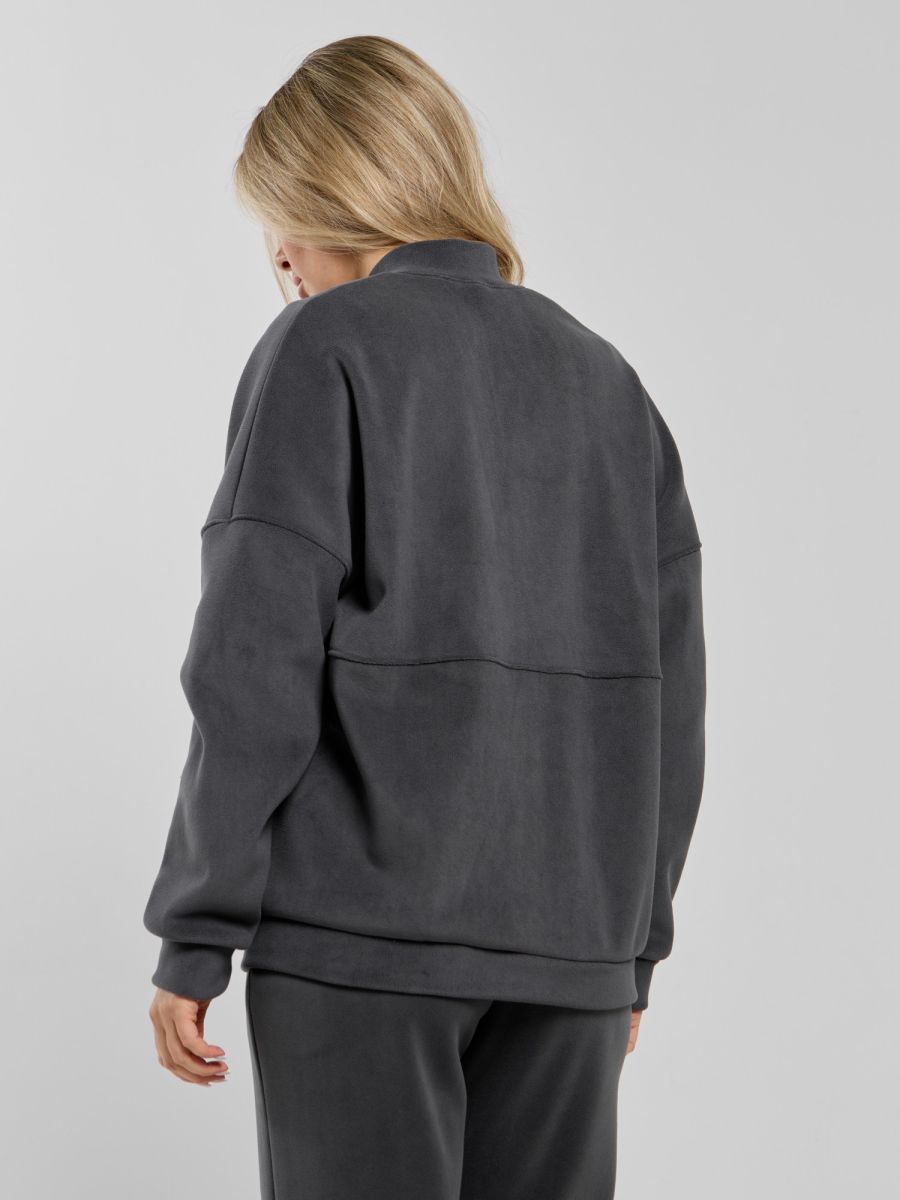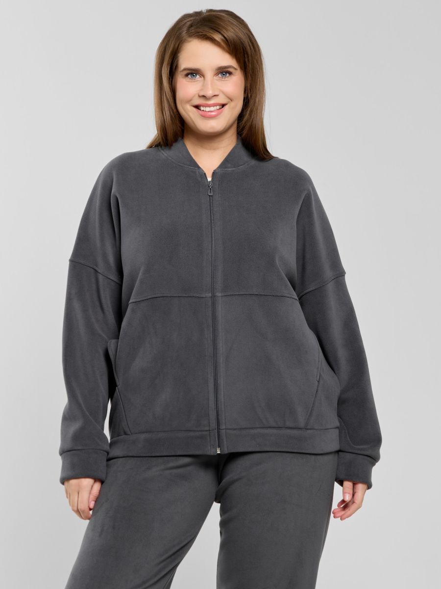 Куртка-бомбер – молодежная из гладкокрашенного трикотажного полотна «дабл-флис» (двухсторонний флис) прямого силуэта, свободная, с длинными втачными рукавами, горловиной овальной формы, обработанной втачной планкой, центральной бортовой застежкой на тесьму «молния». Полочка и спинка состоят из двух деталей, низ изделия с притачным поясом, рукава с притачными манжетами. Пояс, планка горловины, манжеты рукавов выполнены из основного материала.