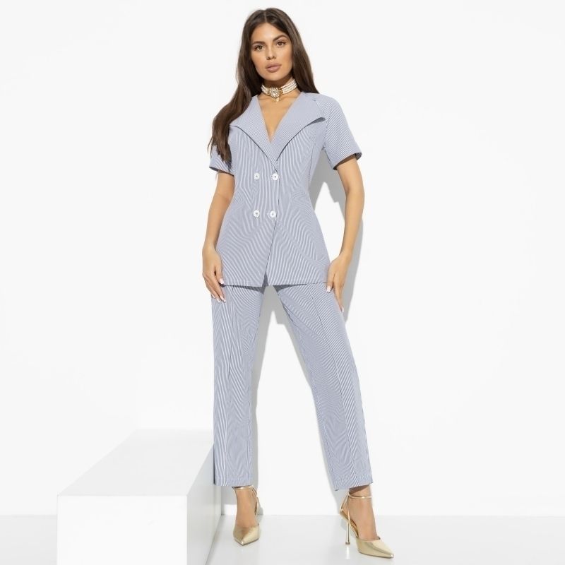 Этот брючный костюм не только элегантен, но и удивительно универсален.