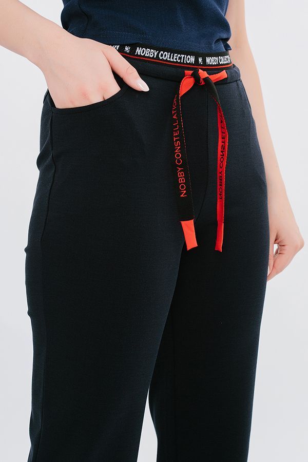 Детали: спереди карманы с горизонтальным входом, сзади кокетка. Пояс из фирменной резины с кулиской.