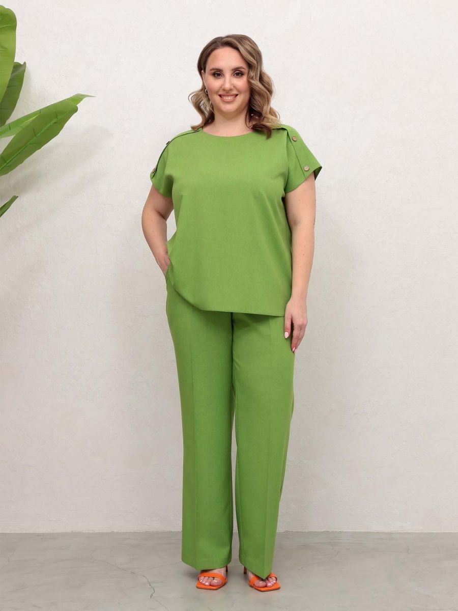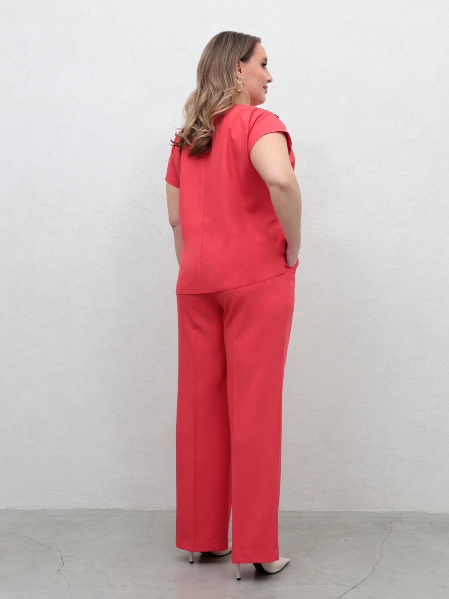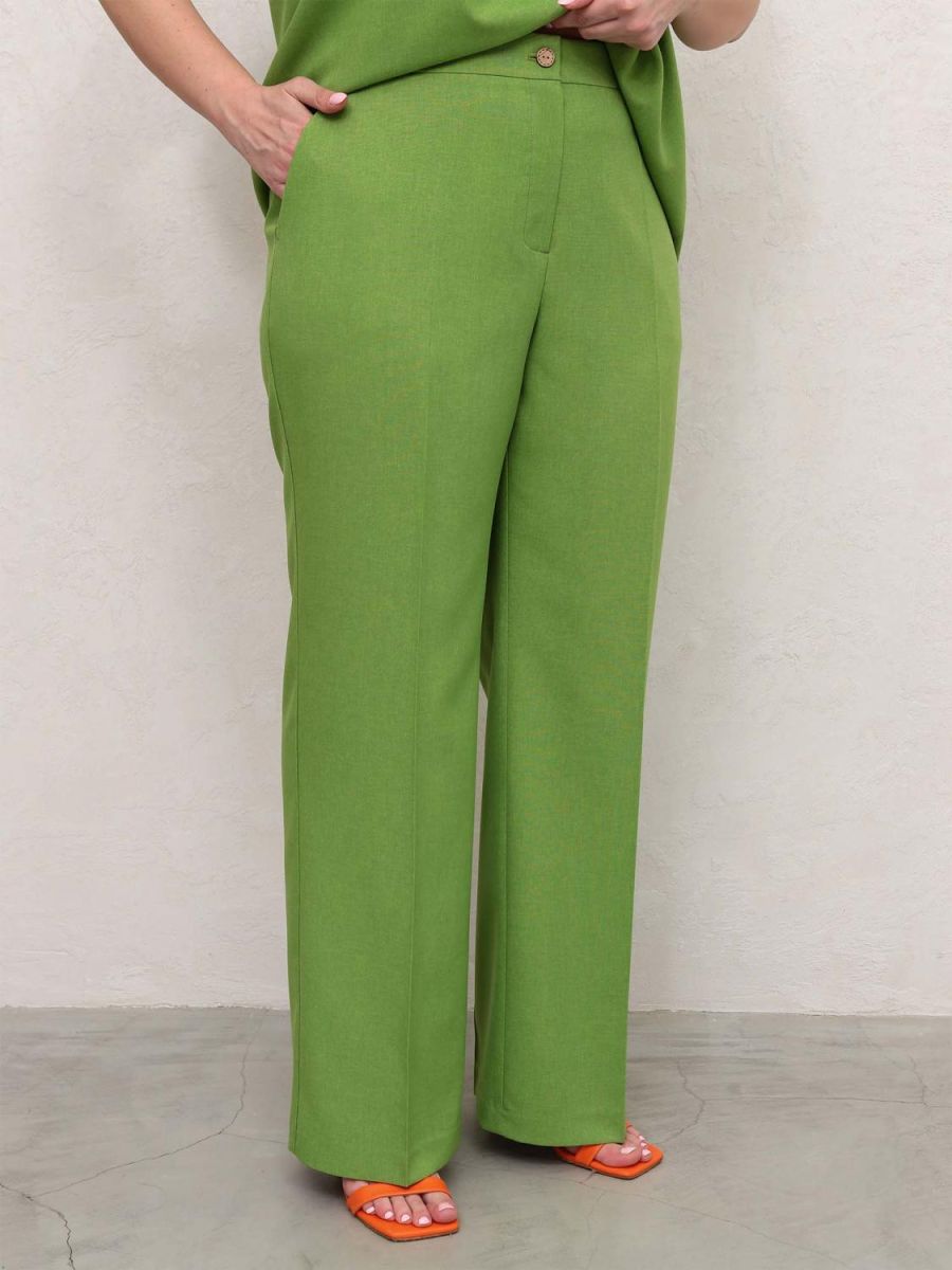 Брюки свободного силуэта. Имеются боковые карманы в швах. на задней половинке один карман в листочку. Застежка спереди на молнию и пуговицу. Пояс притачной сзади на резинке.