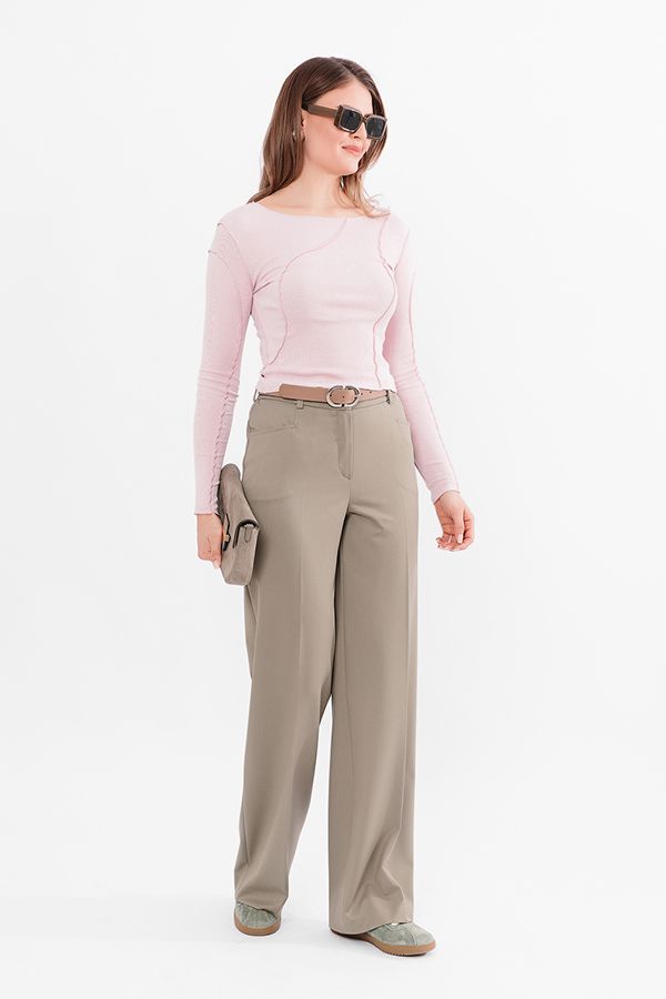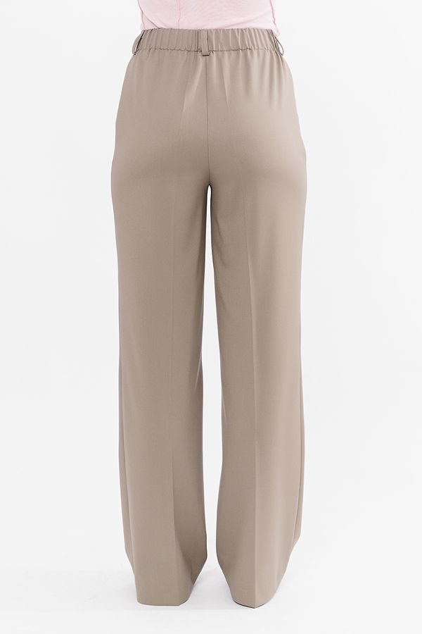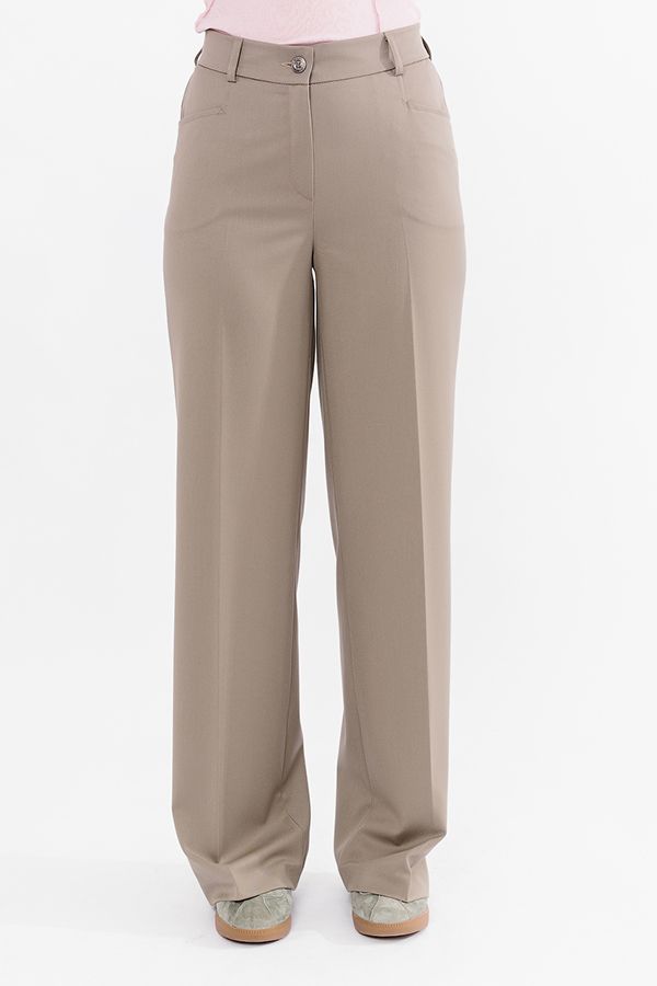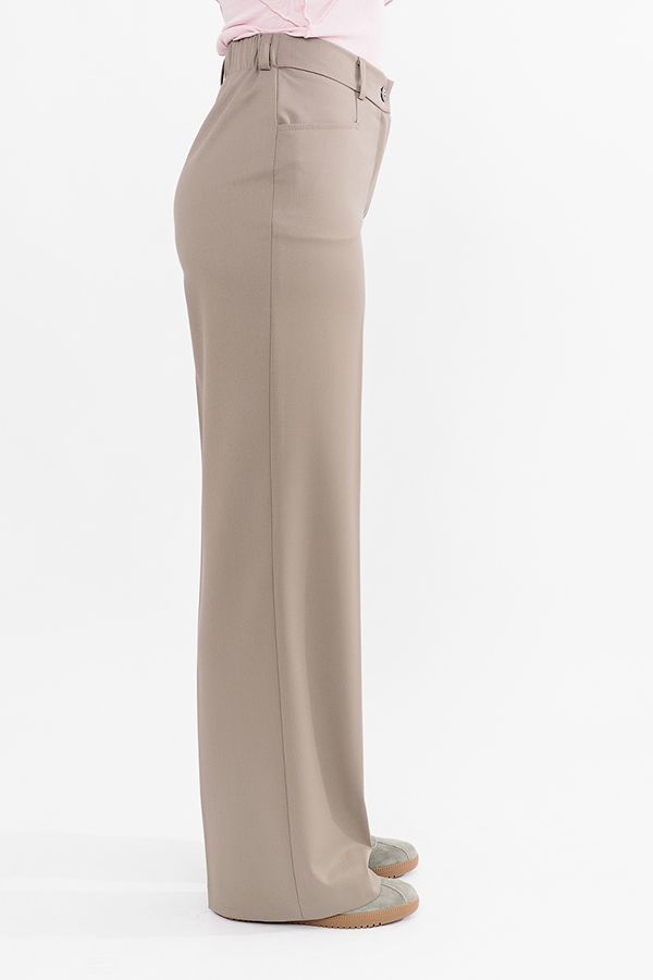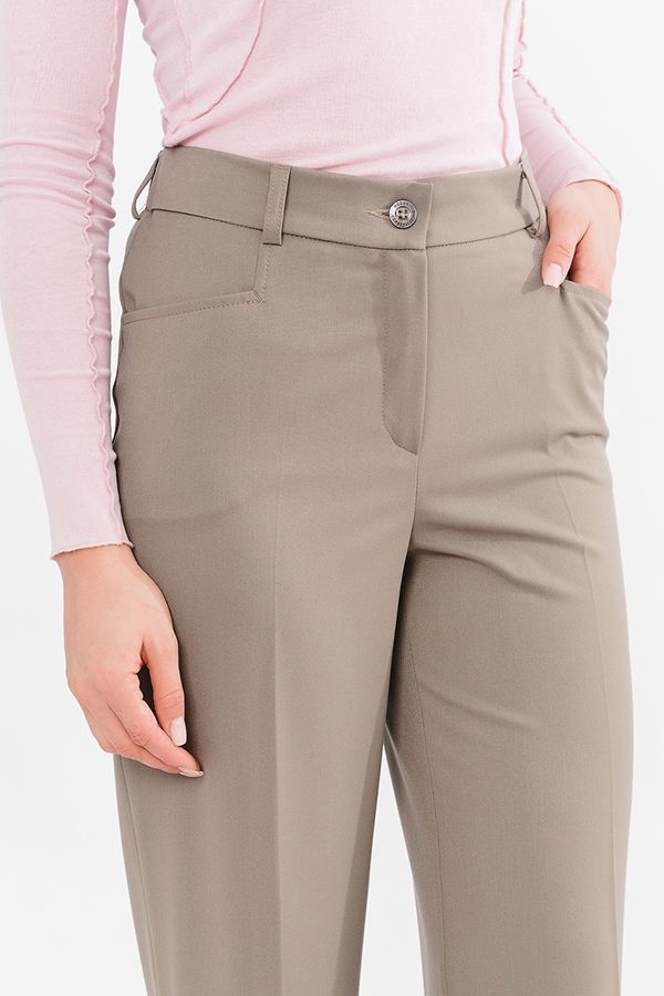 Детали: спереди застежка на молнию и пуговицу, оригинальные карманы с горизонтальным входом, по спинке в поясе резина на сборке , на поясе шлевки.