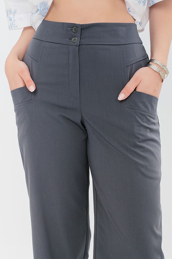 Детали: спереди застежка на молнию и две пуговицы, прорезные карманы с подкройным бочком, сзади кокетка.