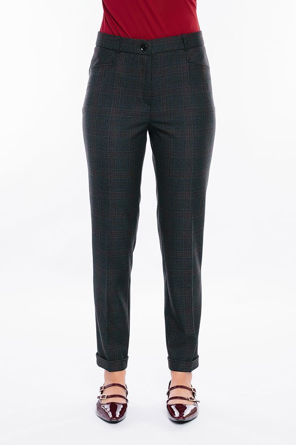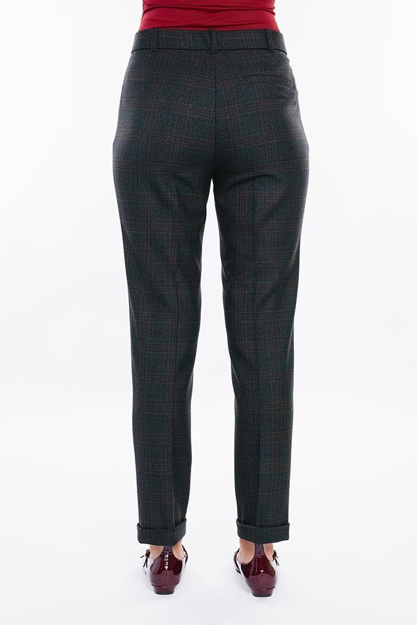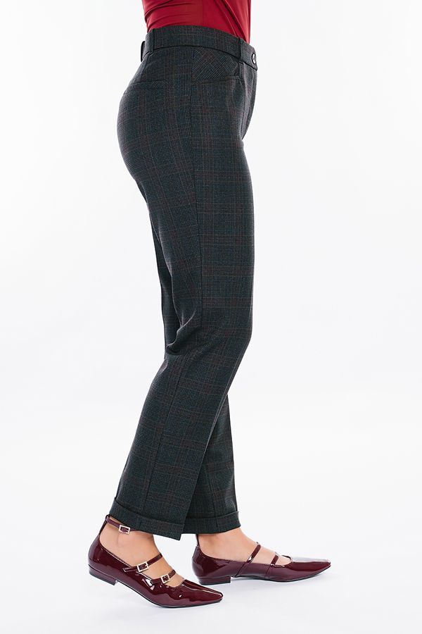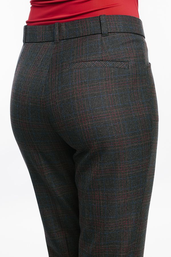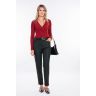 Модель в классическом стиле со стрелками. Детали: спереди застежка на молнию и пуговицу, боковые карманы с горизонтальным входом, сзади под вытачками справа листочка с имитацией кармана. В пояс вставлена эластичная лента. По линии низа отворот, который можно использовать для изменения длины брюк. Длина по внутреннему шву - 73 см. Ширина низа - 18 см. *Числовые параметры соответствуют размеру 46. Размер модели на фото: 44. Параметры модели: 86-63-94. Рост модели на фото: 173 см.