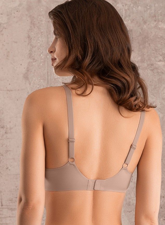 Наполнение чашки - воздушный поролон мусс. Регулируемые бретели ширины 1,2 мм. Застежка в два ряда на три позиции. Спинка классическая до размеров 5B/4C, начиная с размера 5C/4D маечный тип спинки.