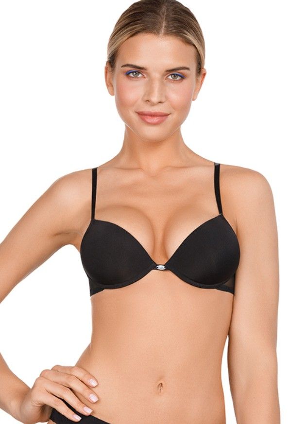 Бюстгальтер пуш-ап с градуированной чашкой, на косточках. Средний размер пуш-ап. Несъемные бретели, два варианта моделирования спинки. Застежка в один ряд на три позиции. Выполнен из микрофибры и сетки. Коллекция "Milla" Серия Milla пересекается и взаимозаменяется по цветам с серией Margo.