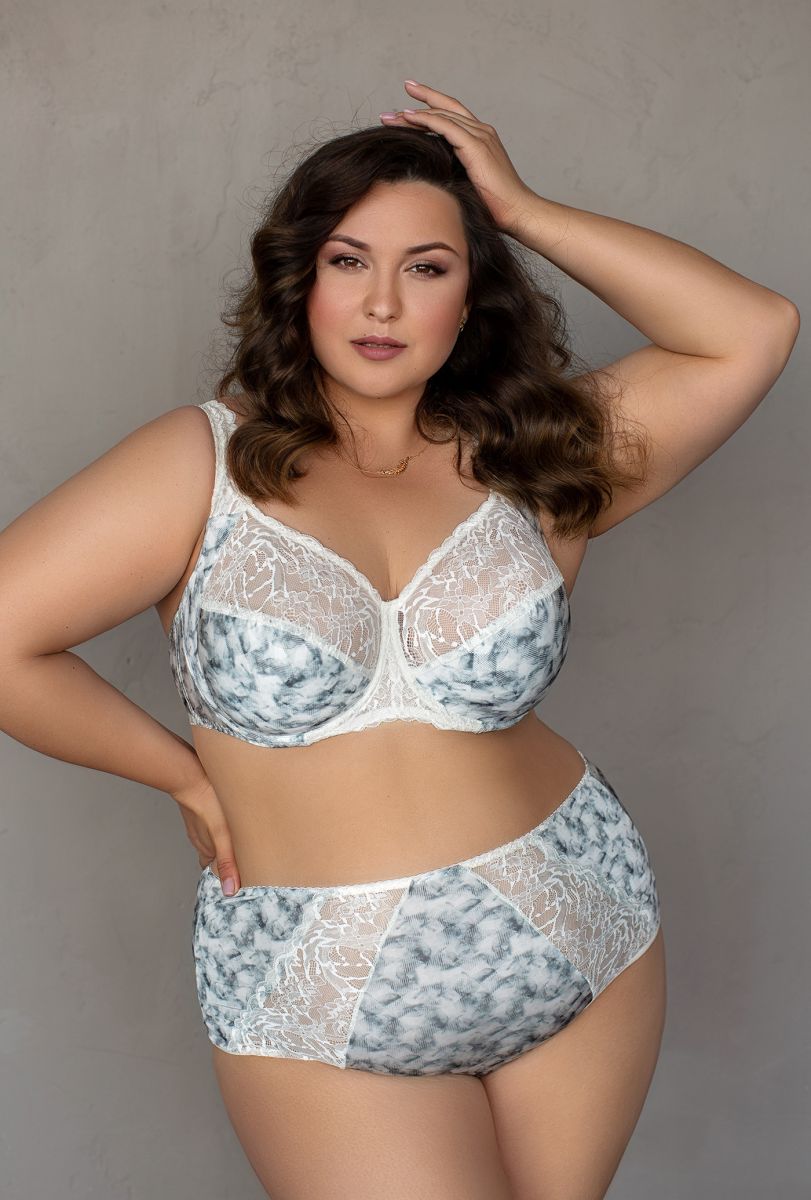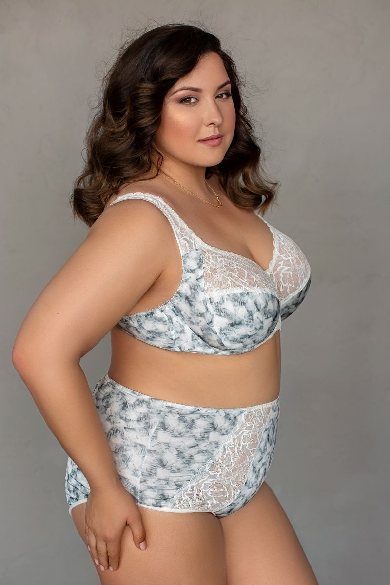 Верх чашки и пояс бюстгальтера выполнены с дополнительным нижним слоем из эластичной сетки с целью улучшения формоустойчивости, что актуально для больших размеров.