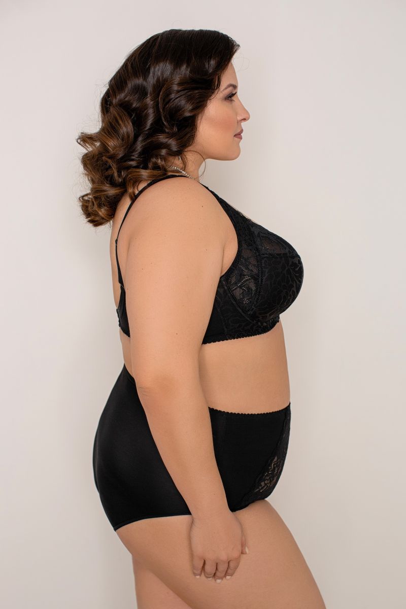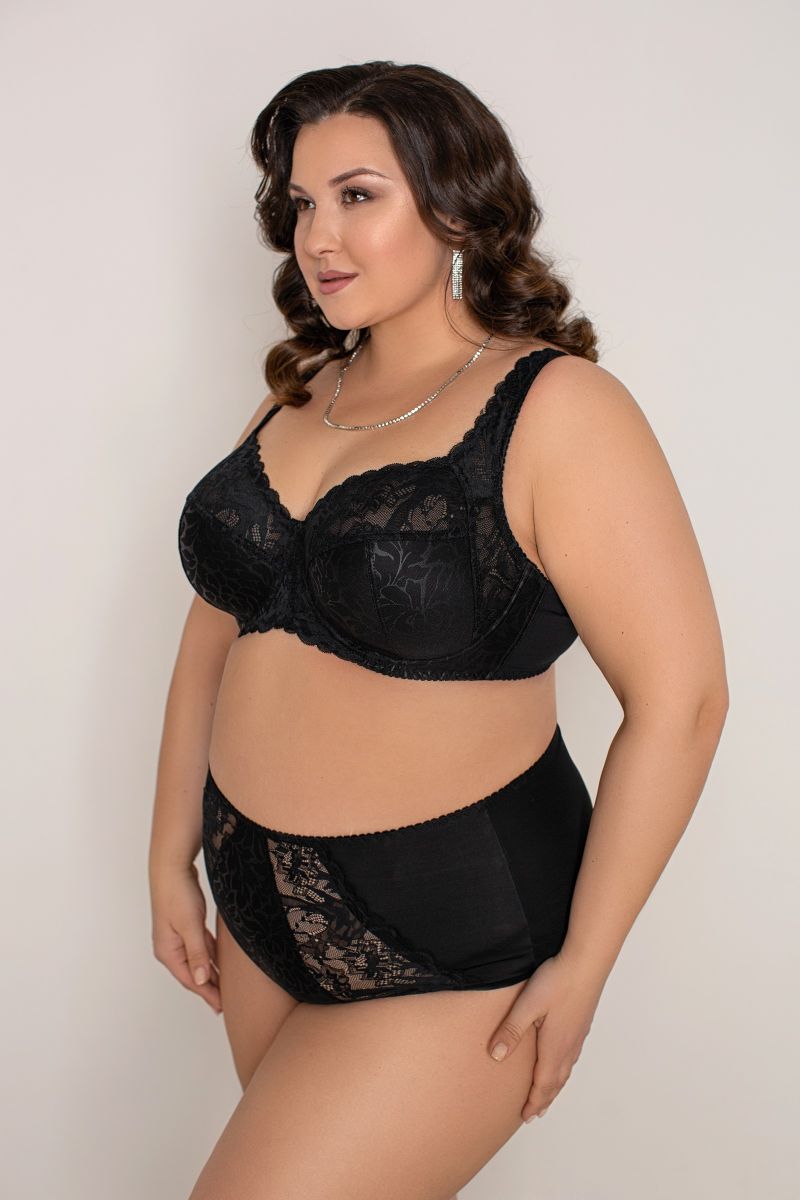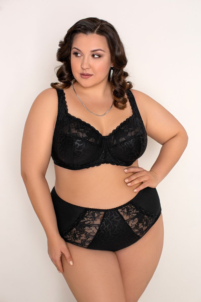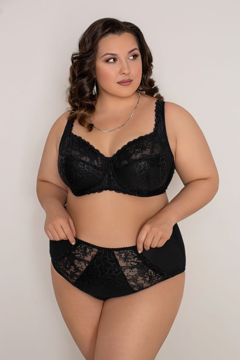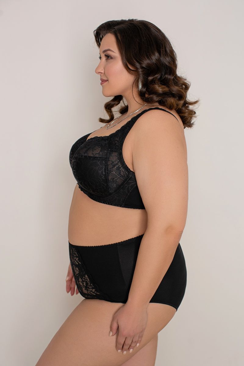 Бюстгальтер на каркасах, крой чашек и бретелей выполнен с учетом необходимости поддержки большой пышной груди, внутренняя подкладка чашек выполнена из хлопкового полотна.
