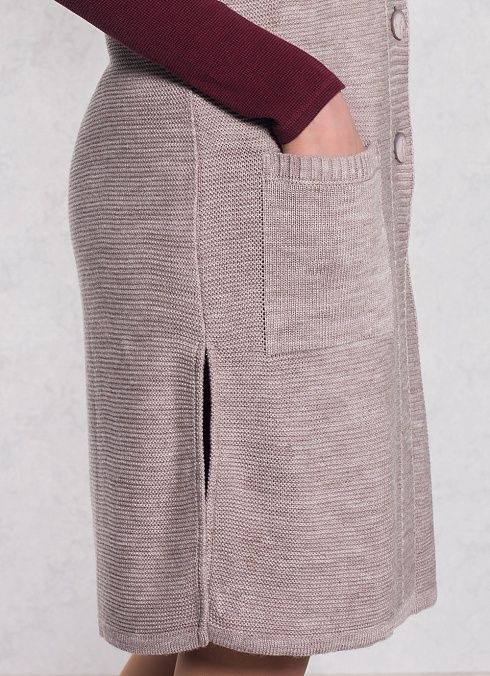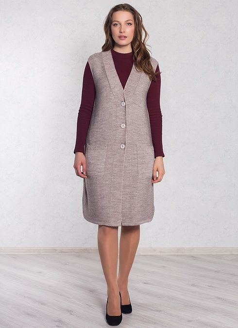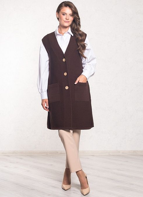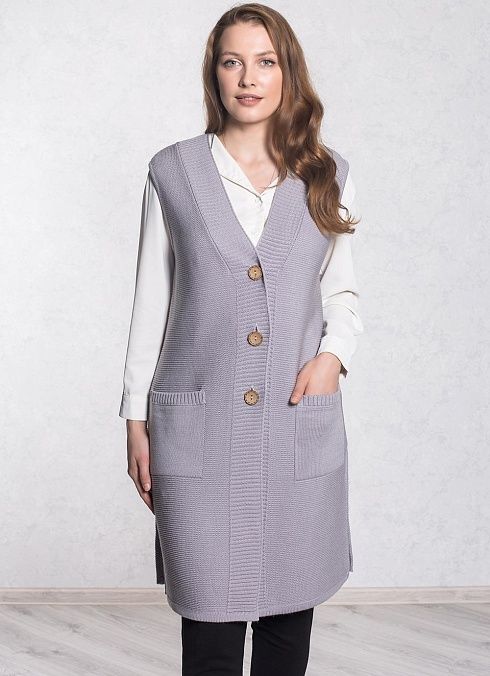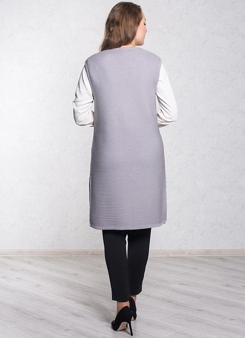 Удлиненный жилет свободного кроя с разрезами по бокам.