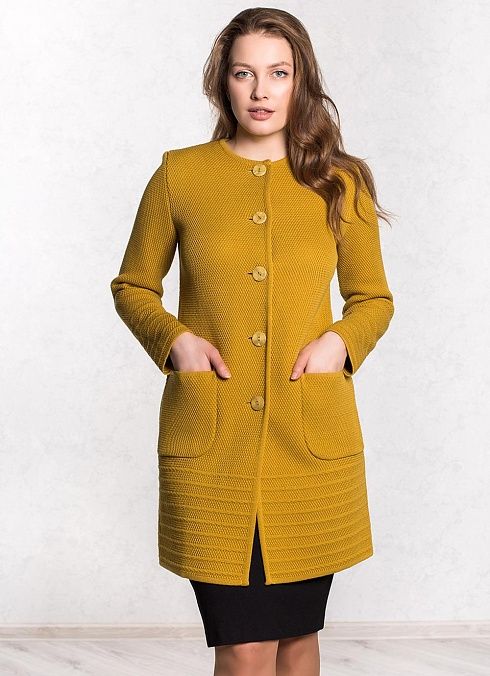 Элегантная удлиненная модель с пуговицами и карманами отлично впишется в Ваш гардероб. Свободный крой, а также наличие в составе шерсти дает удобство и комфорт.