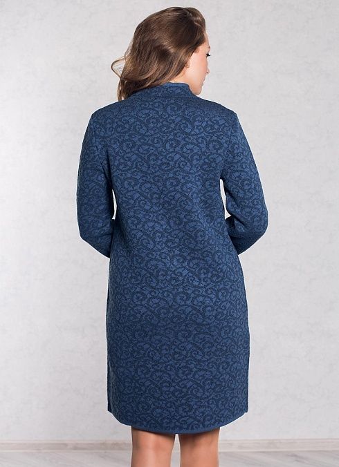 Классический жакет свободного покроя. Ажурный узор, отложной воротничок и длина чуть выше колена.