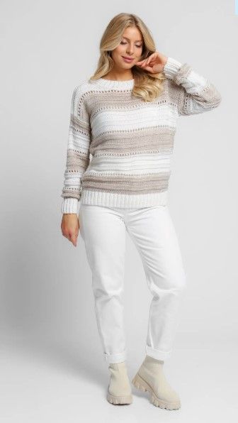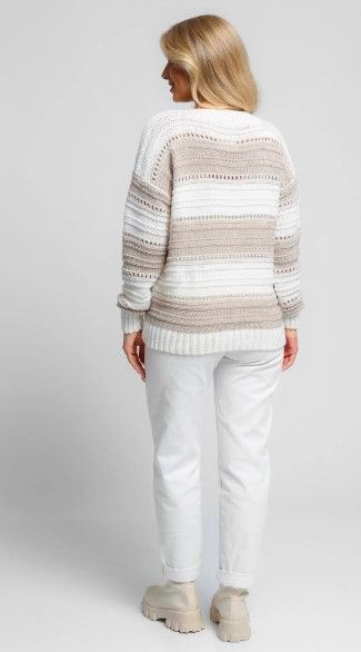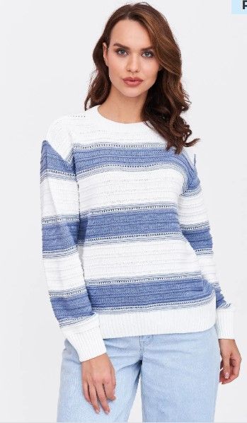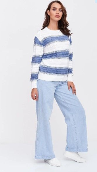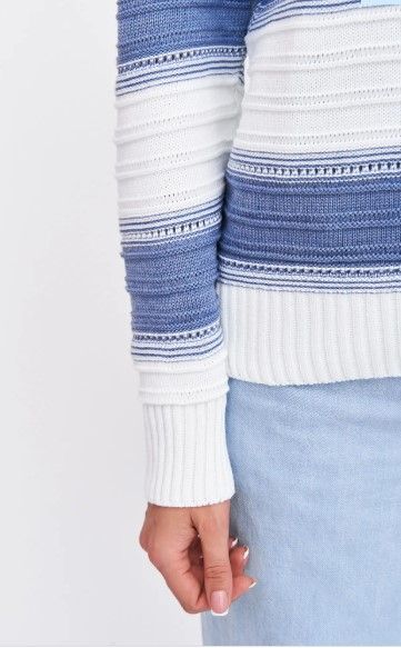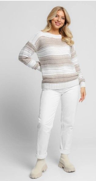 Женский джемпер с круглым вырезом горловины и спущенной линией плеча. Стильная модель выполнена из дышащей, износостойкой, мягкой акриловой пряжи с добавлением полиэстера и шерсти. Поэтому джемпер не только прекрасно смотрится, но и комфортно сидит на любой фигуре, не теряет форму и цвет даже после множества стирок. Отлично сочетается с джинсами, брюками и юбками.