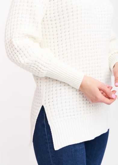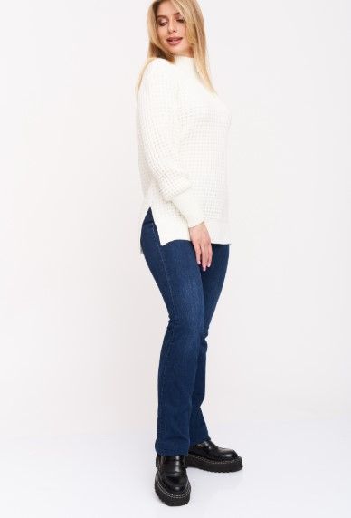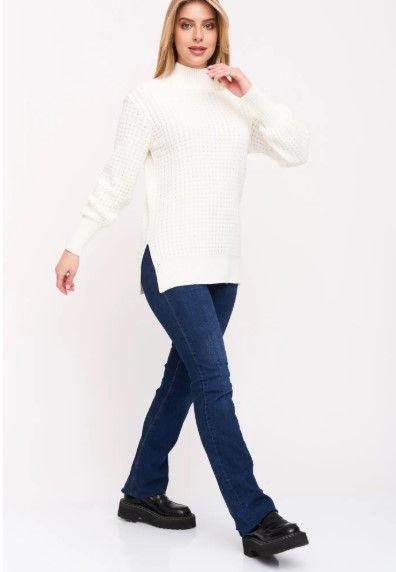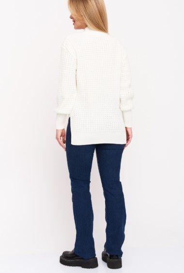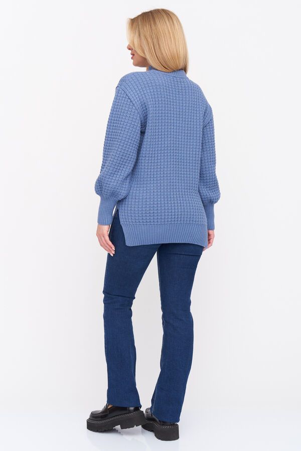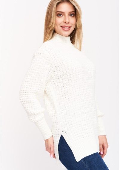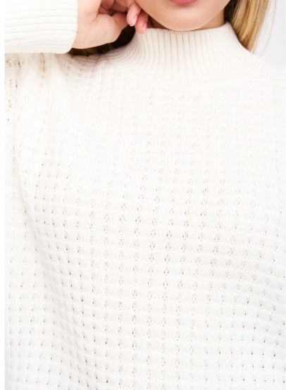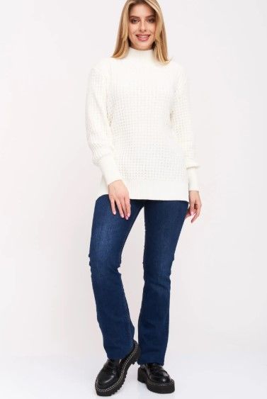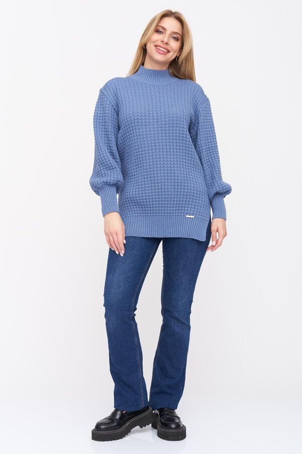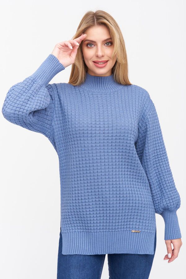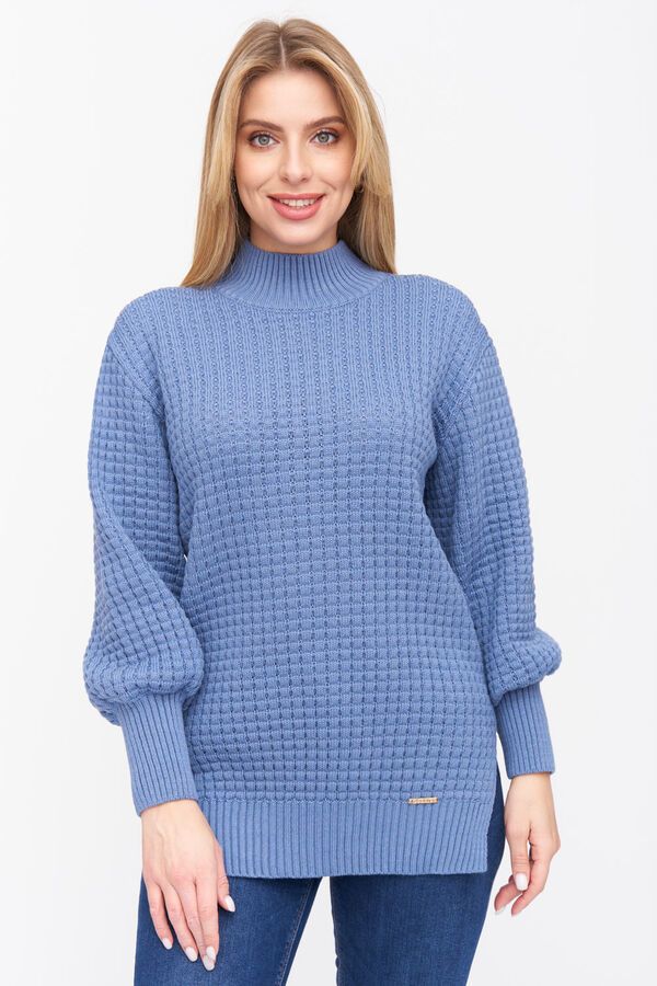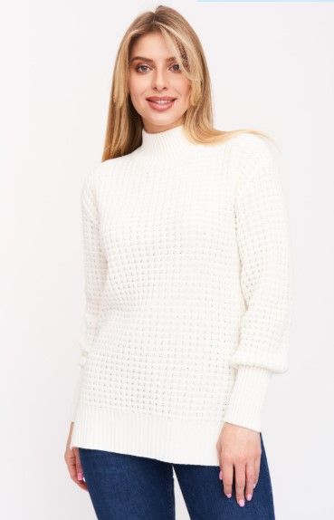 Женский джемпер с воротником-стойка. Спущенная линиия плеча и длинный рукав. Стильная модель выполнена из дышащей, износостойкой, мягкой акриловой пряжи с добавлением полиэстера и шерсти. Поэтому джемпер не только прекрасно смотрится, но и комфортно сидит на любой фигуре, не теряет форму и цвет даже после множества стирок. Отлично сочетается с джинсами, брюками и юбками.