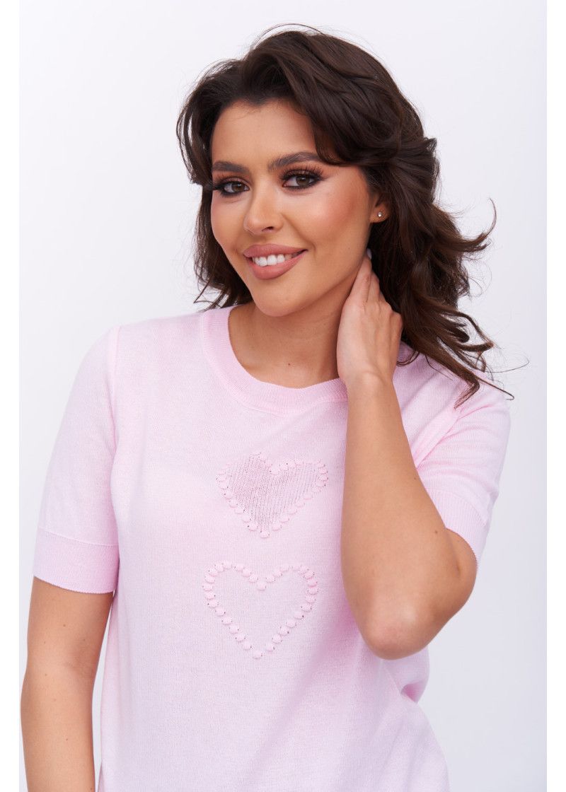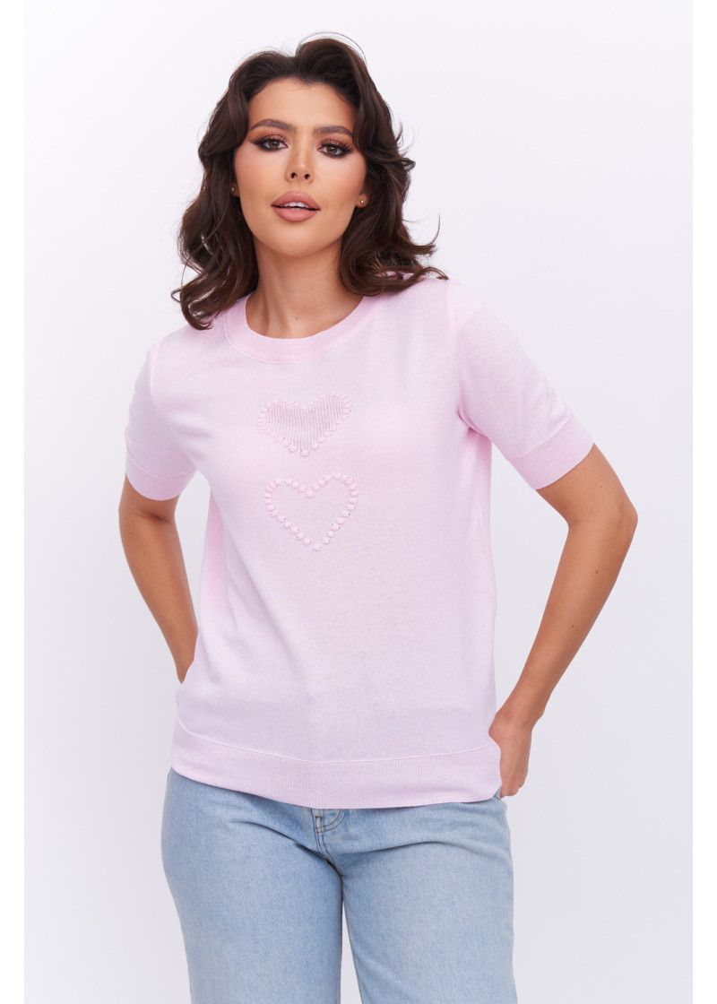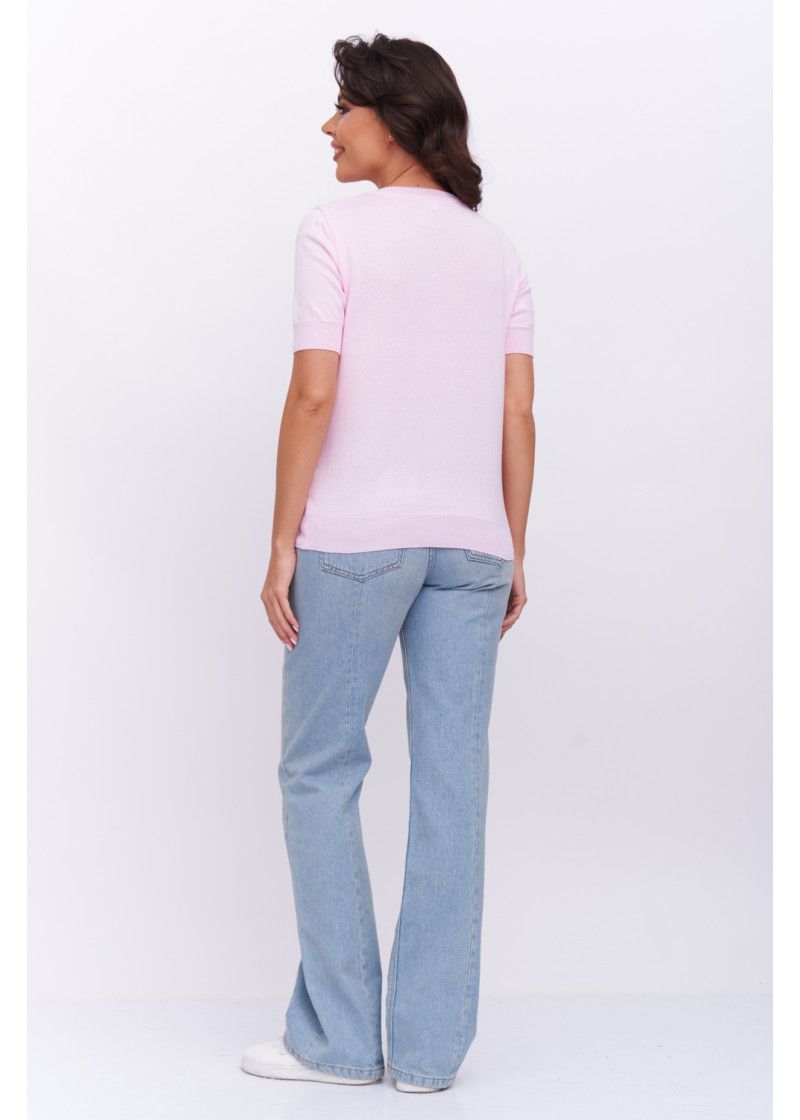 Легкий трикотажный джемпер с коротким втачным рукавом. Выполнен из пряжи, в составе которой 30% хлопка, что позволяет носить его как летом, так и весной и осенью. Круглая горловина и короткий рукав делают наш джемпер легким и легко сочетаемым с кофточками или кардиганами, юбками, брюками, джинсами.