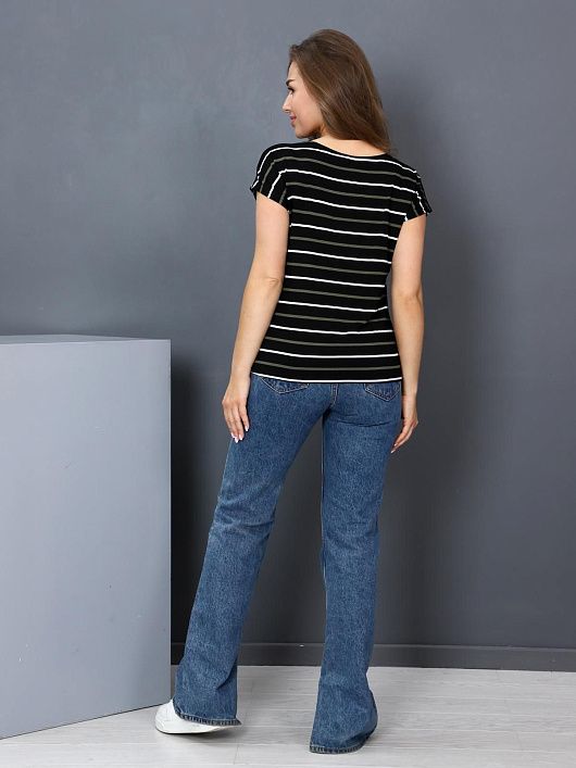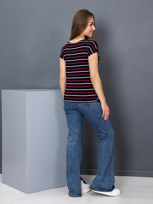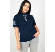 Футболка женская полуприлегающего силуэта со спущенной линией плеча и круглым вырезом горловины.