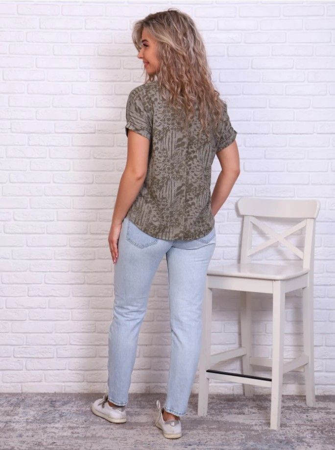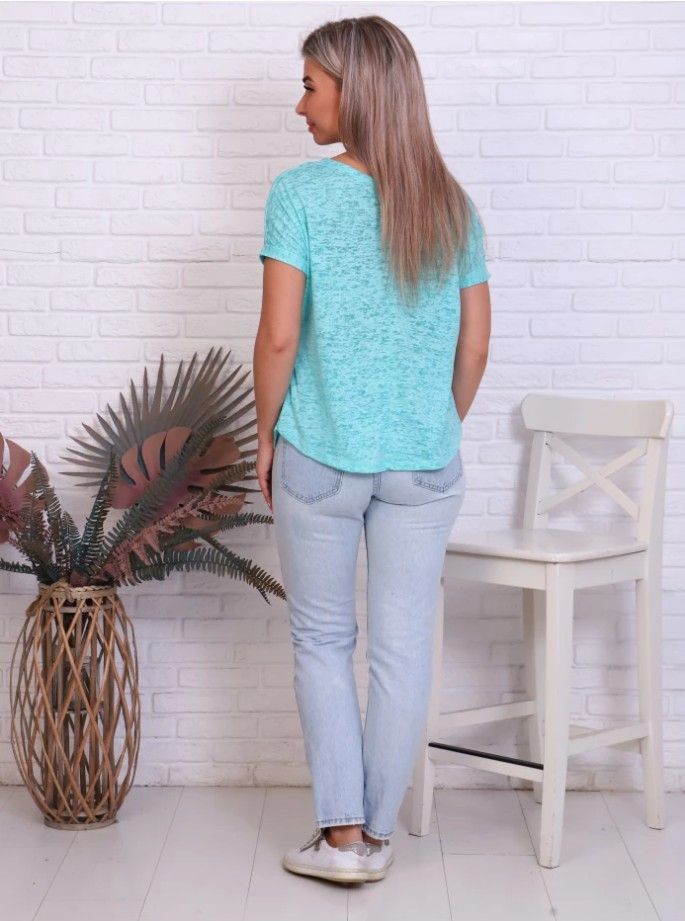Футболка женская,полуприлегающего кроя.Со спущенным рукавом.С модным принтом.