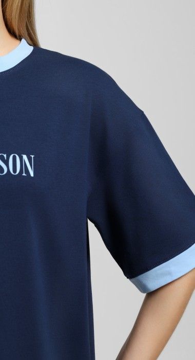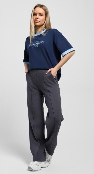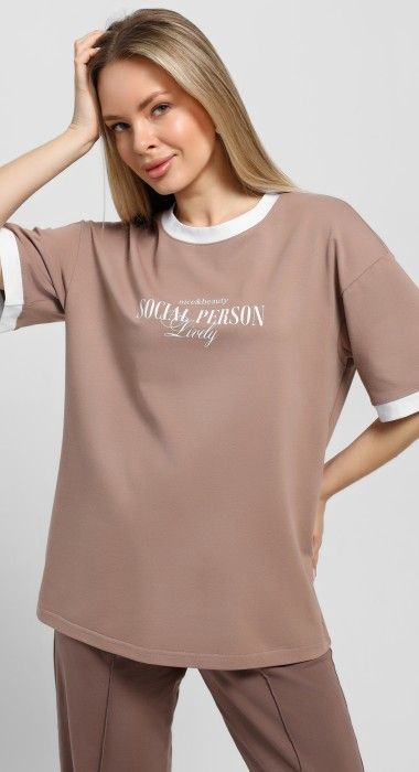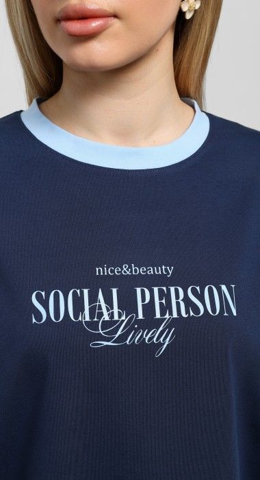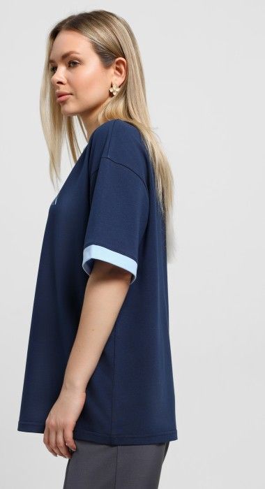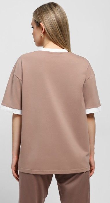 Футболка молодежная из трикотажного полотна «кулирка с лайкрой» свободного покроя, горловиной овальной формы, короткими втачными рукавами. Планка горловины и манжеты на рукавах выполнены из контрастного материала, на полочке принт, выполненный в технике «шелкографии».