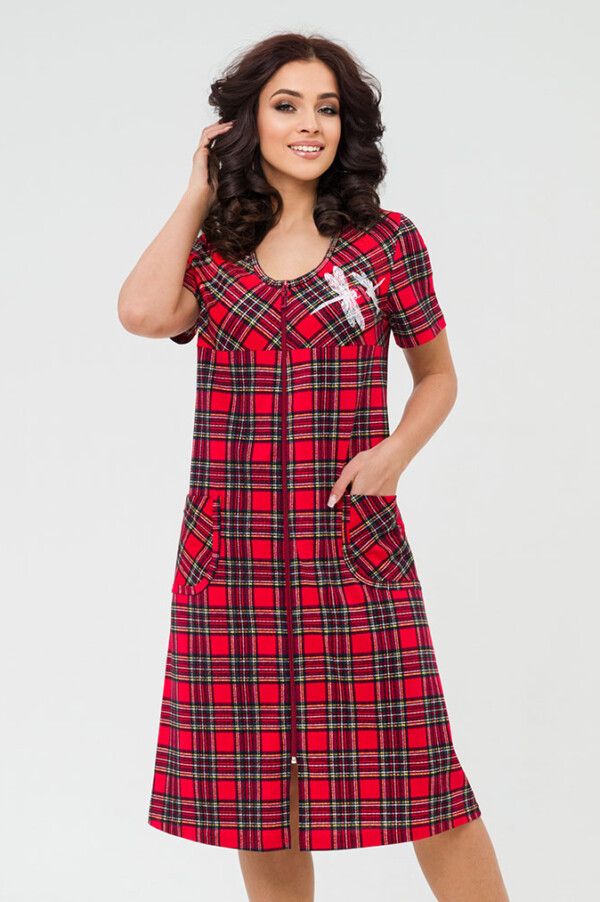 Халат на молнии из 100% хлопка – это идеальный вариант для тех, кто ценит комфорт и уют в домашней обстановке. Он выполнен из высококачественного трикотажа и имеет мягкий, приятный на ощупь материал, который не раздражает кожу и не вызывает аллергии, так как является натуральным. Такая домашняя одежда- идеальный подарок для мамы ,бабушки, подруги на Новый год, День рождения, 8 марта, День матери. Халат миди прямого ( свободного ) кроя с округлым воротником создает комфорт , удобство и универсальность. Короткий рукав делает образ более стильным и оригинальным . Кроме того, он легко стирается и быстро сохнет. Это идеальный подарок для любителей бани или дачи.