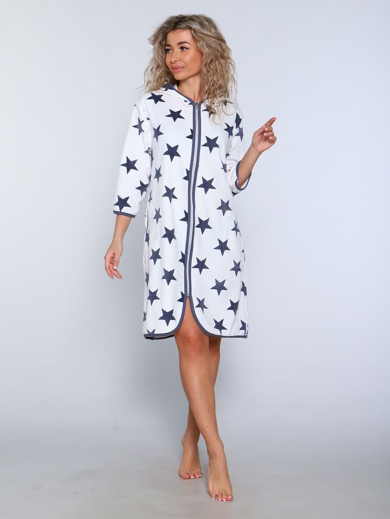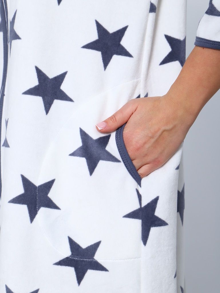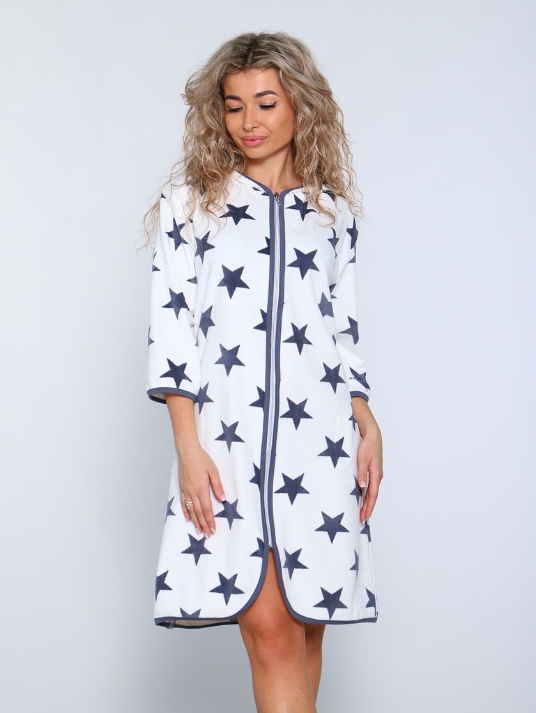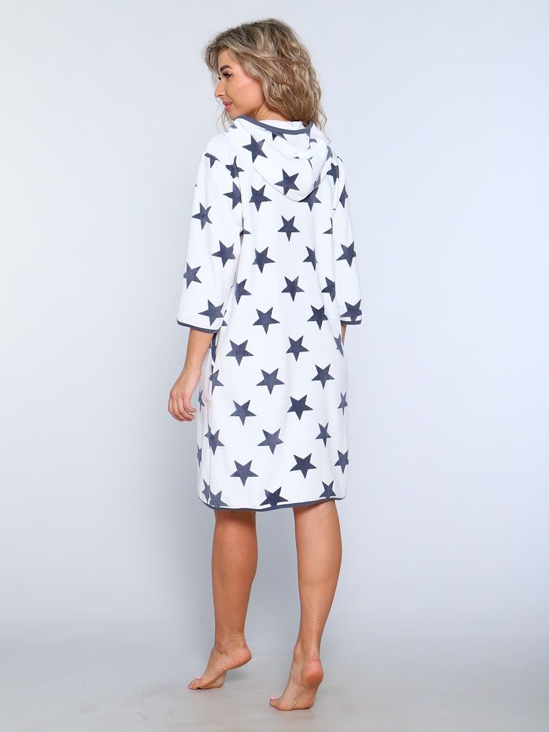 Декор: Принт в виде звезд на белом фоне придает халату игривый и стильный вид.