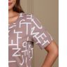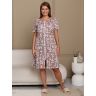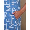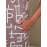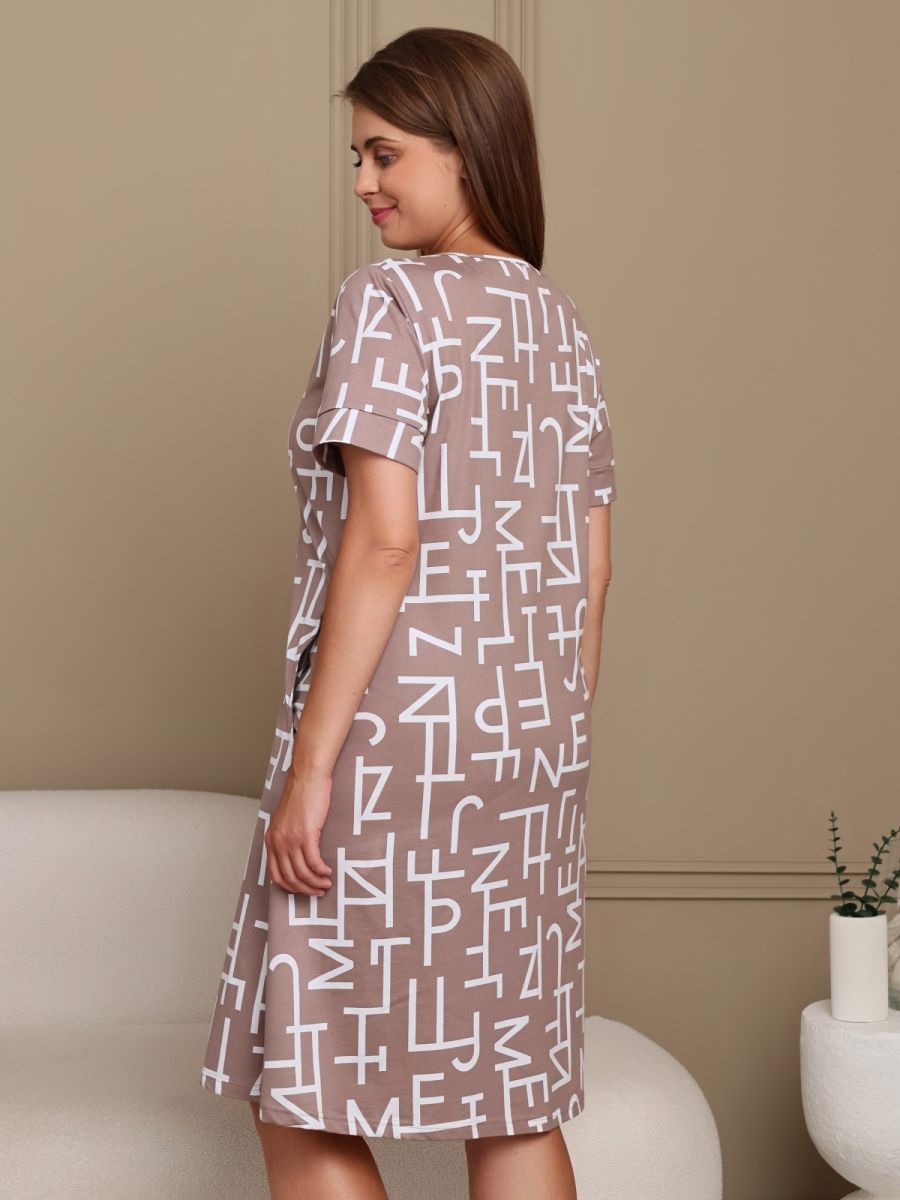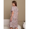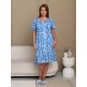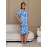 Халат женский из трикотажного полотна «кулирка» с набивным рисунком полуприлегающего силуэта, с горловиной овальной формы, окантованной основным материалом, короткими втачными рукавами с притачными манжетами. В боковых швах, смещенных в сторону полочки, обработаны карманы.