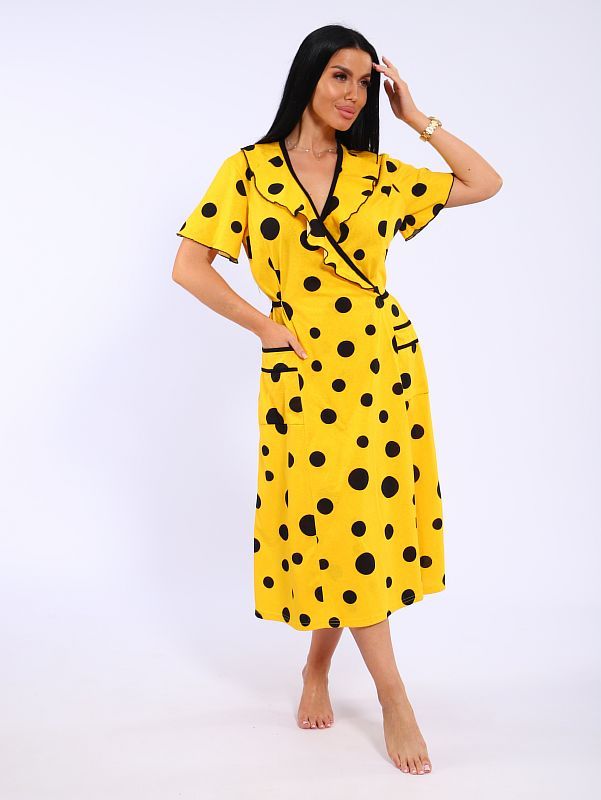 Запашной халат женский, низ расклешенный , рукав- крыло, волан по горловине